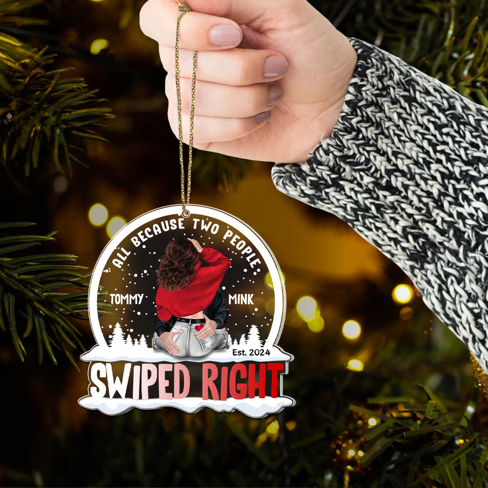 All Because Two People Swiped Right Personalized Acrylic Ornament Globe For Couple