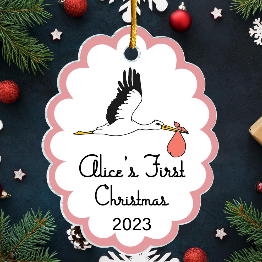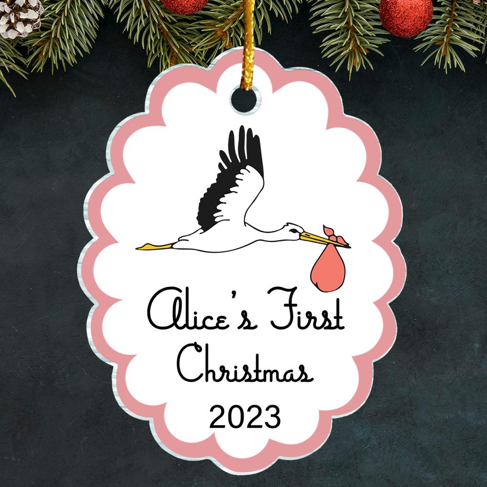 Baby's First Christmas Stork Custom Shape Acrylic Christmas Ornament