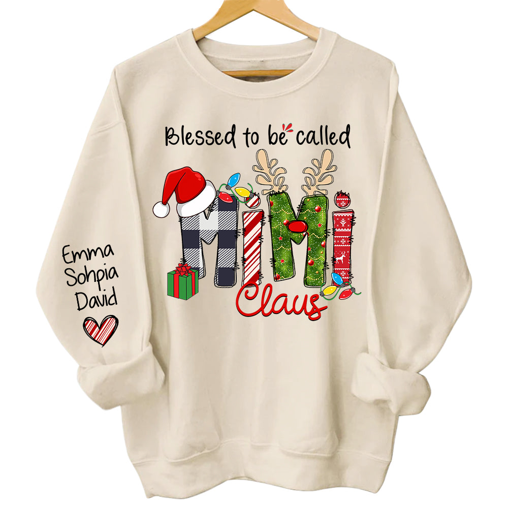Blessed to be called Mimi Claus - Personalized Grandma With Grandkids Name Shirt