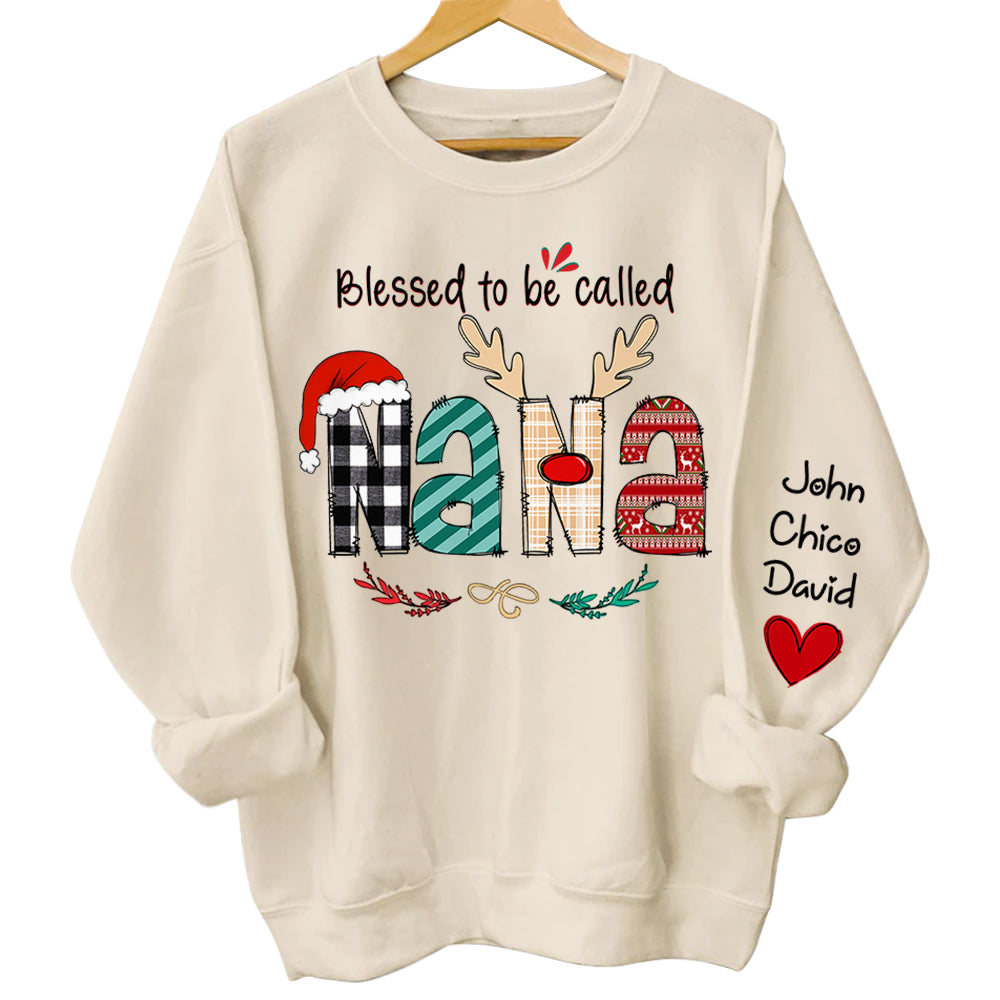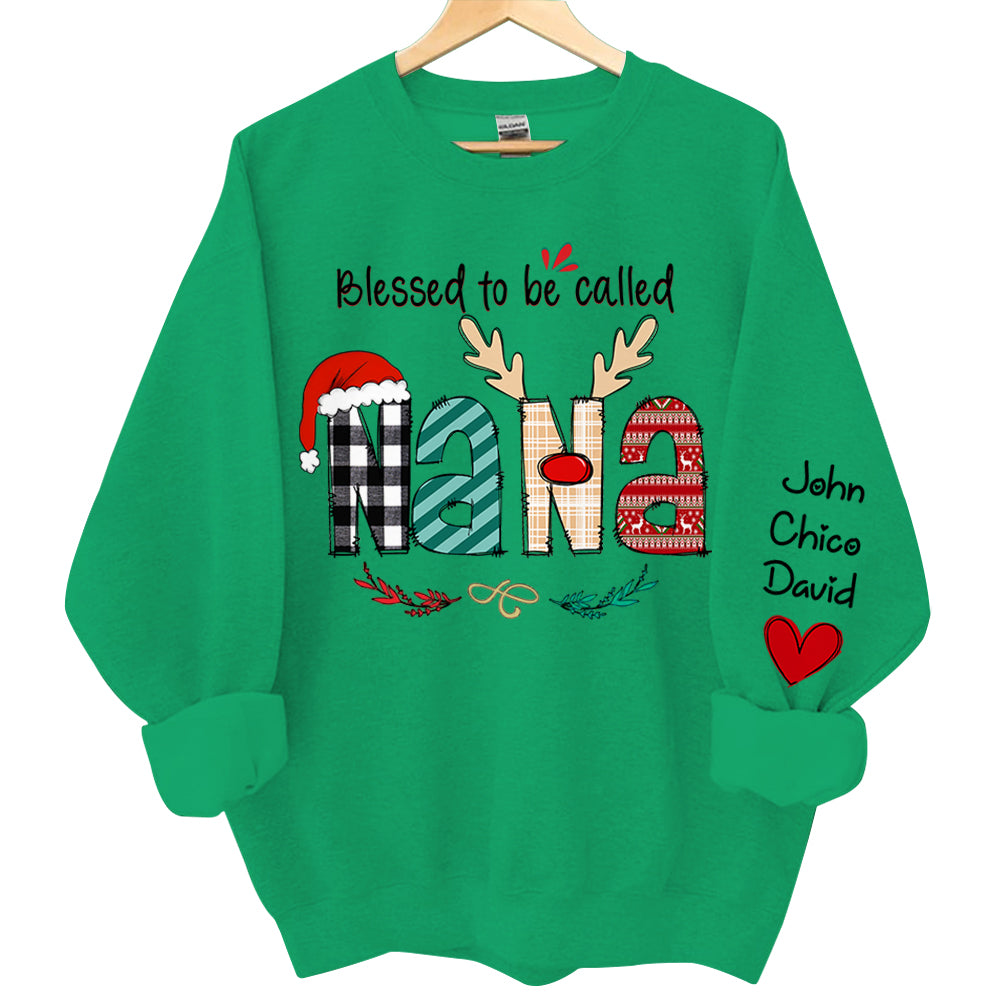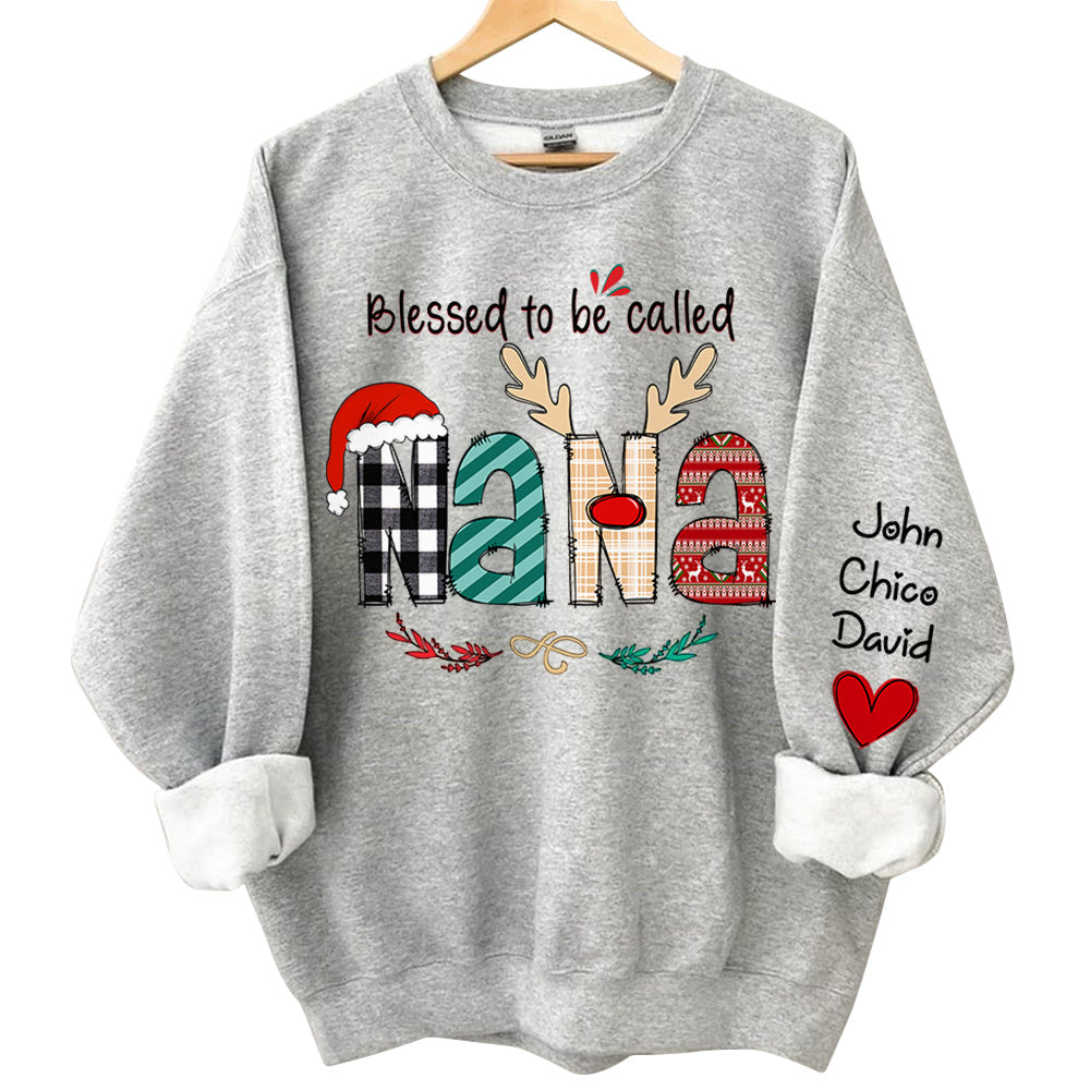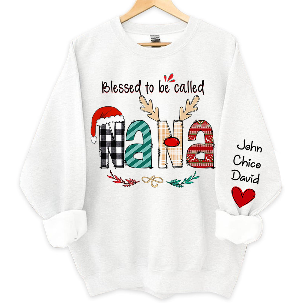 Blessed To Be Called Nana Personalized Sweatshirt - Custom Grandma and Grandkids Christmas Shirt