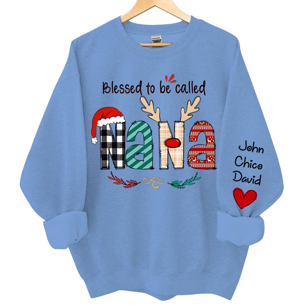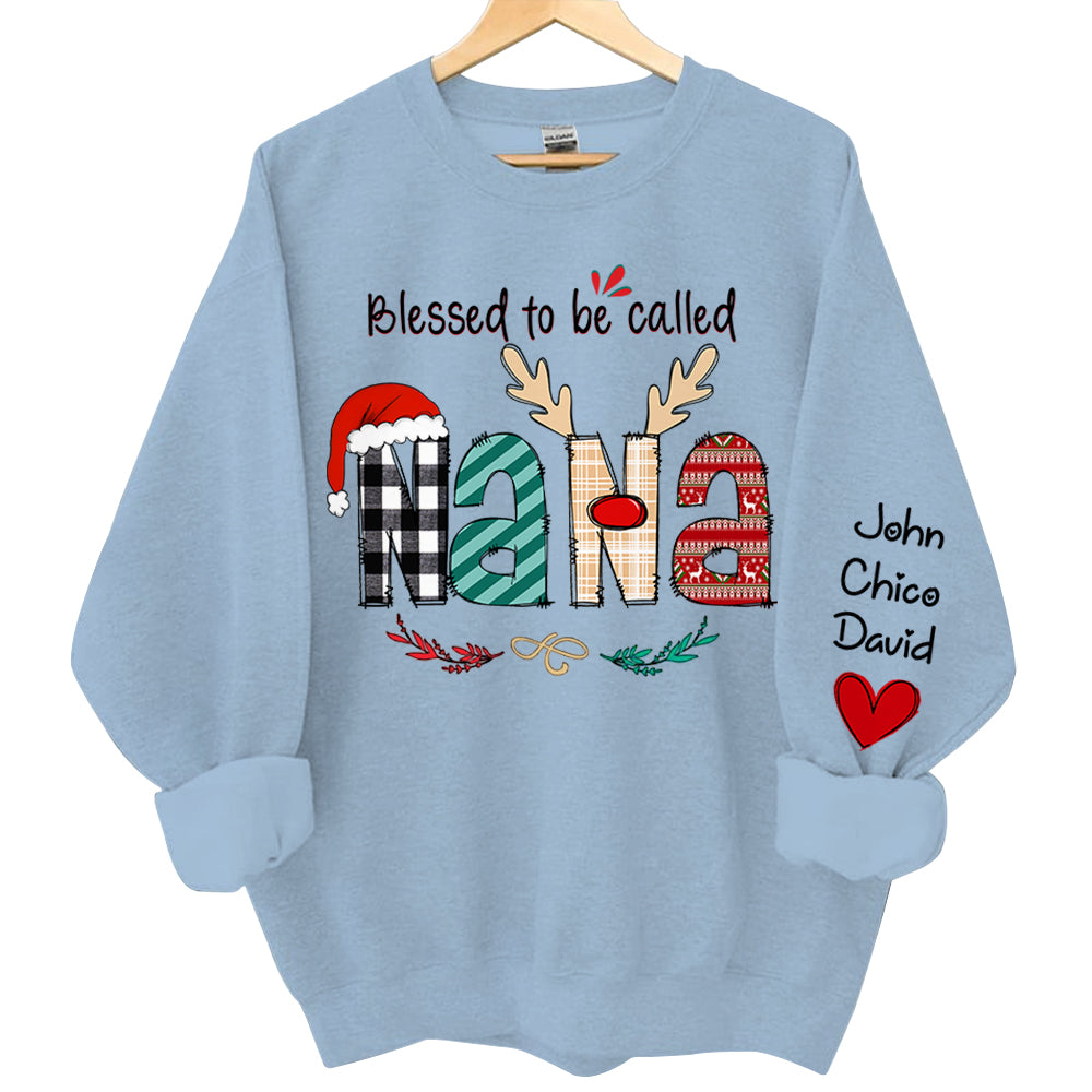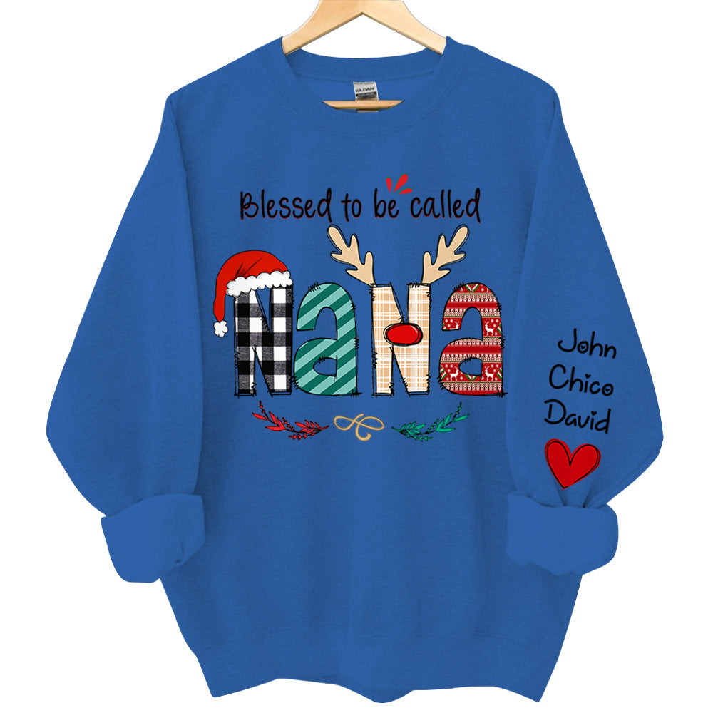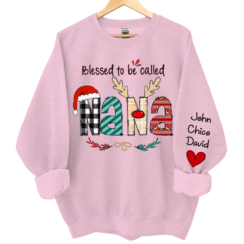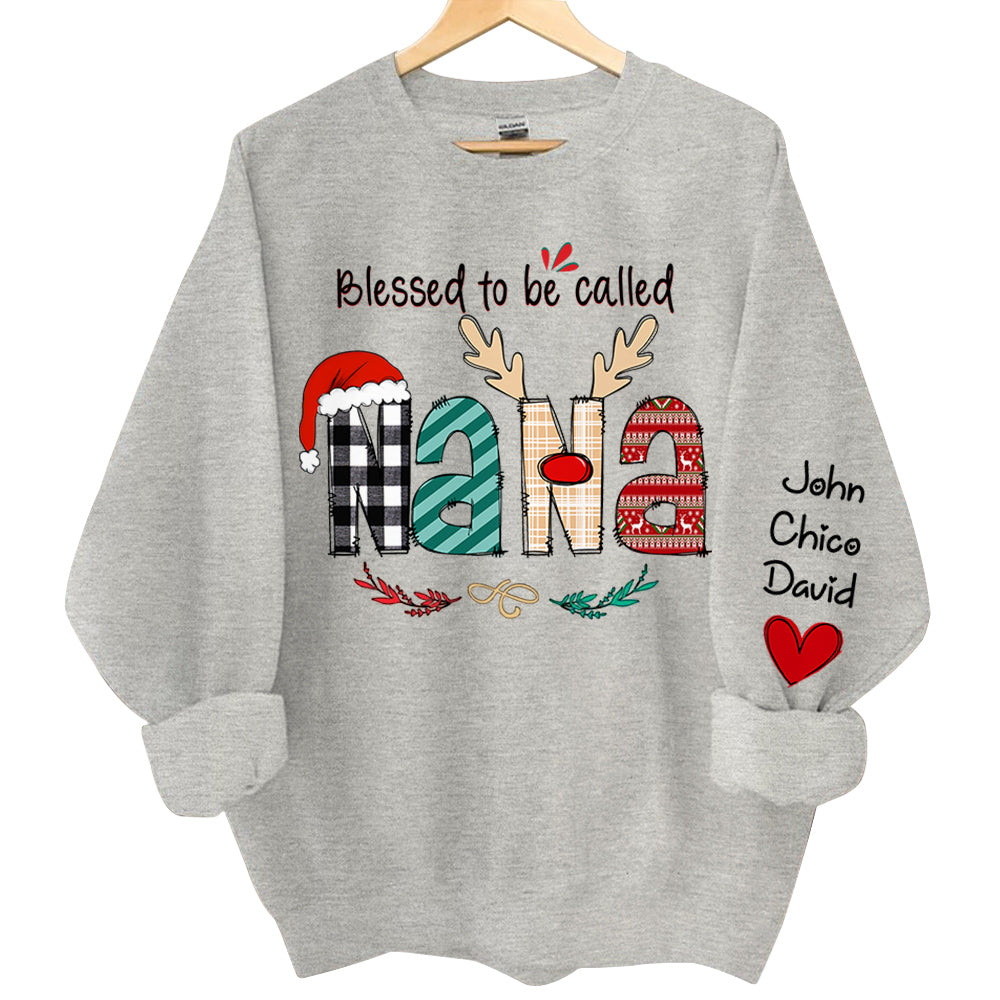Blessed To Be Called Nana Personalized Sweatshirt - Custom Grandma and Grandkids Christmas Shirt