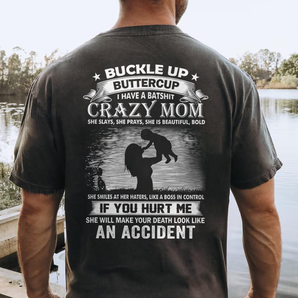 Buckle Up Buttercup I Have A Batshit Crazy Mom Shirt Perfect Gift For Son & Daughter