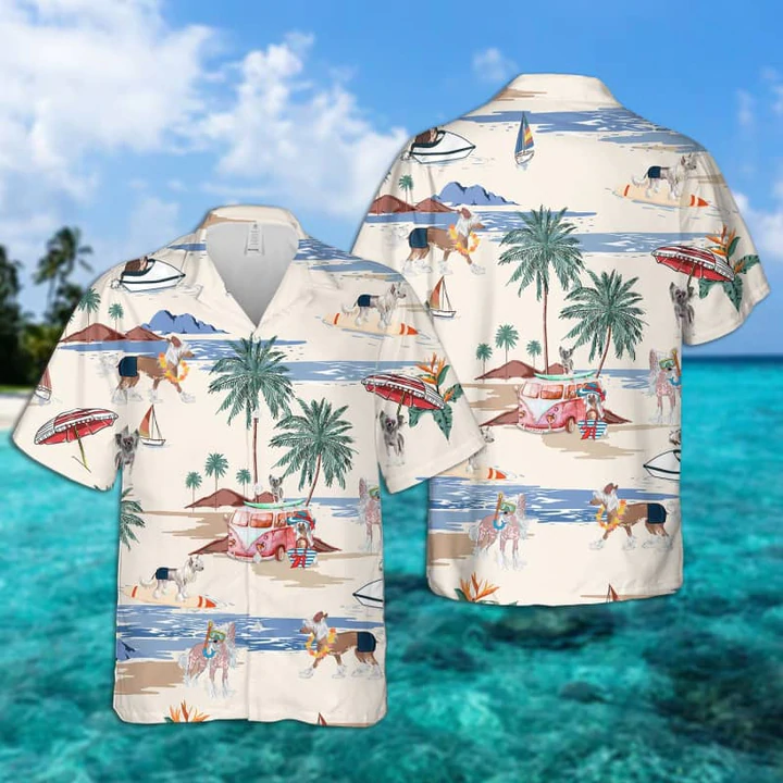 Chinese Crested Dog Summer Beach Hawaiian Shirt, Hawaiian Shirts For Men Short Sleeve Aloha Beach Shirt