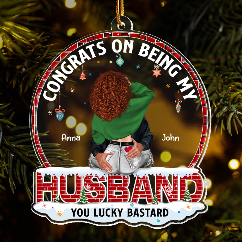 Congrats On Being My Husband You Lucky Bastard - Personalized Couple Ornament
