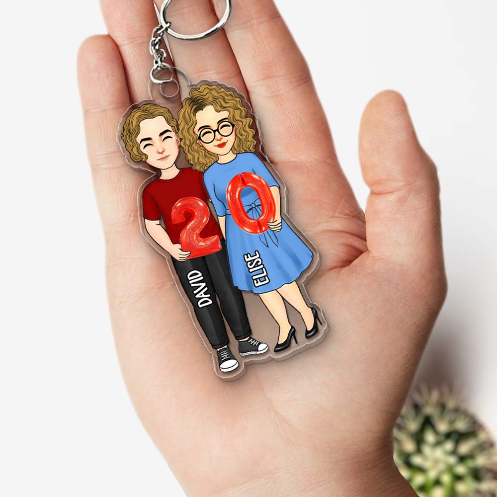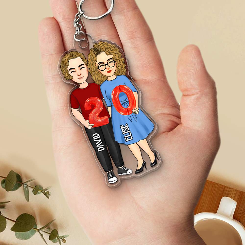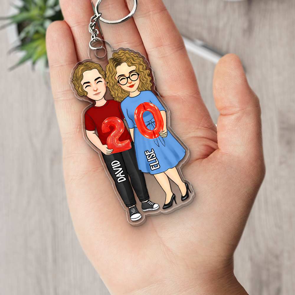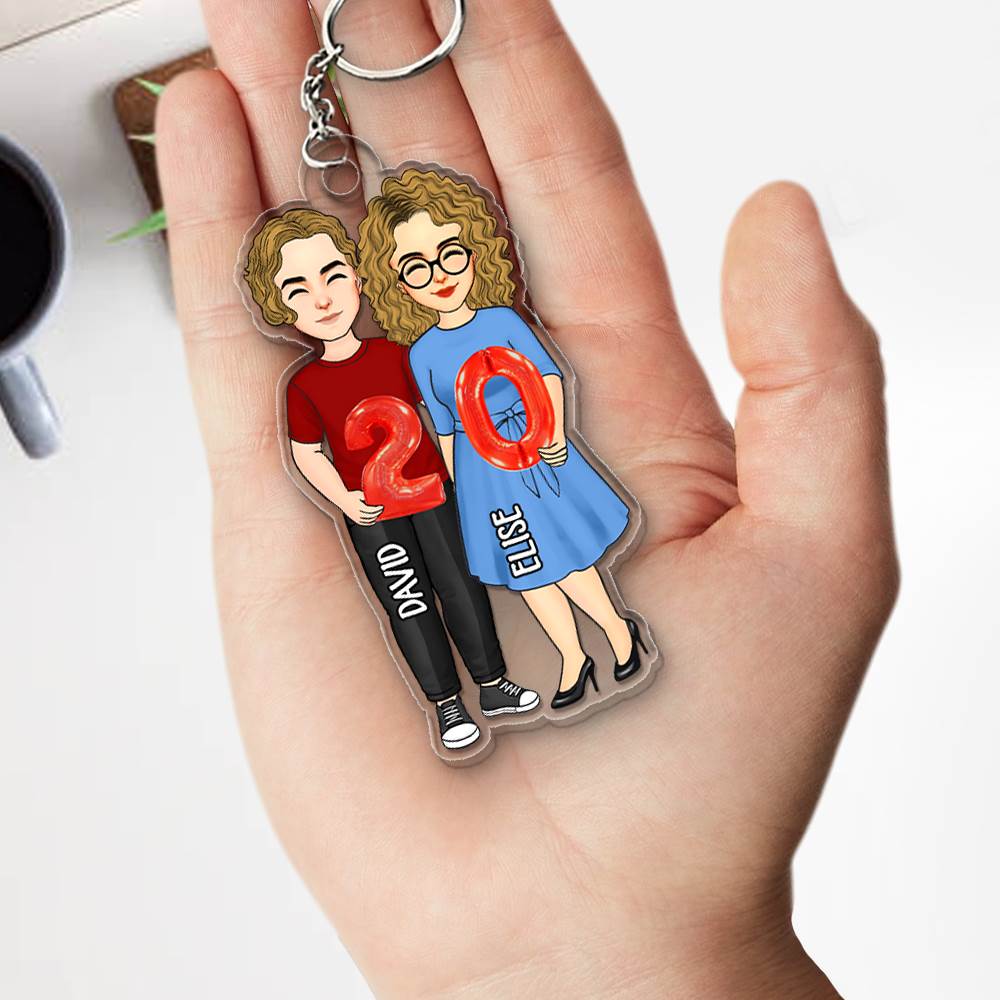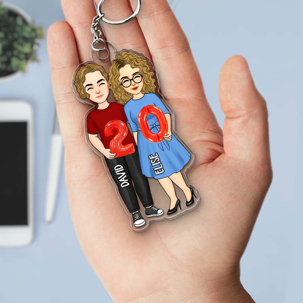 Couple Holding Balloons Anniversary Gift Personalized Acrylic Keychain