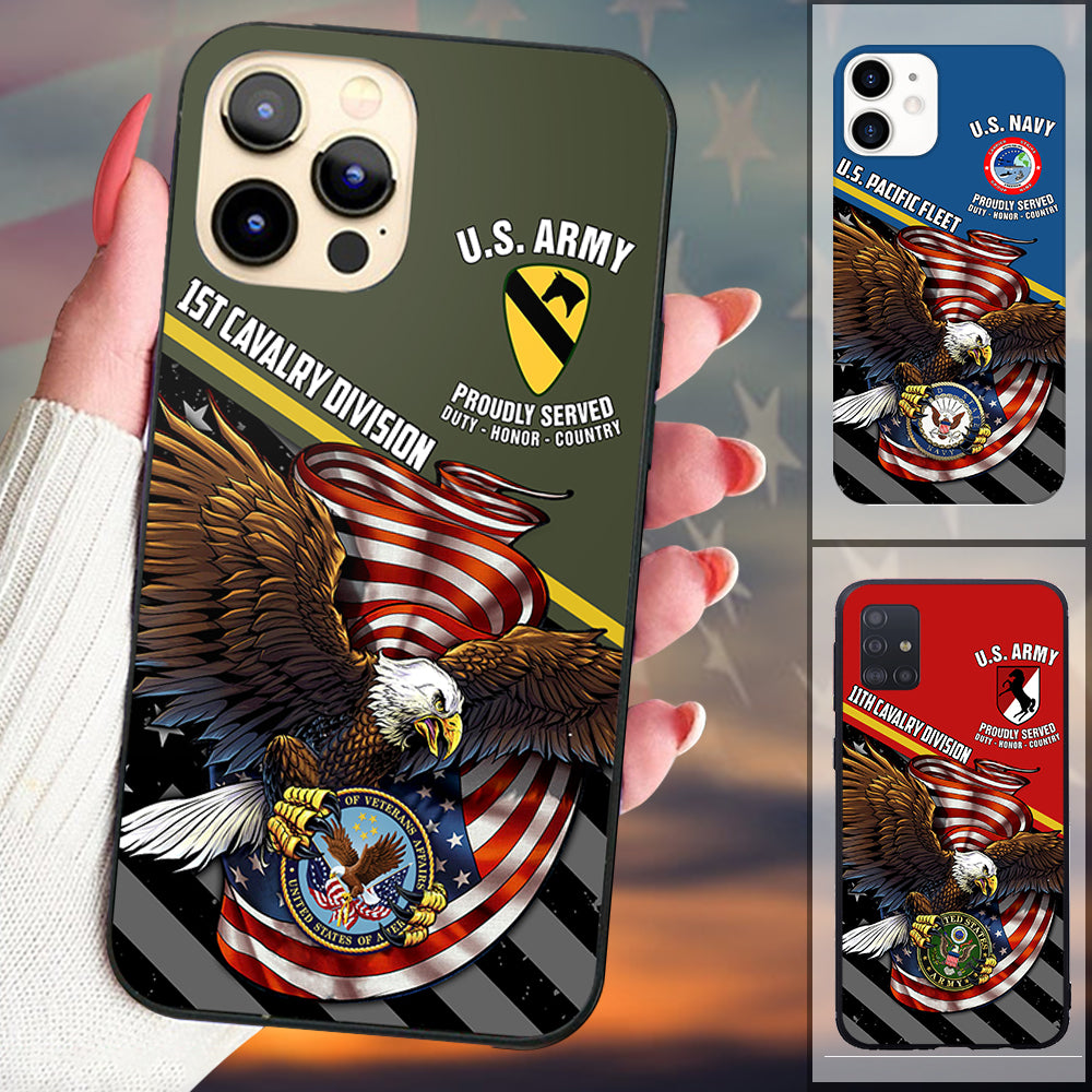 Custom Branch Division Rank Proudly Served Duty Honor Country Eagle Personalized Phone Case For Veterans K1702
