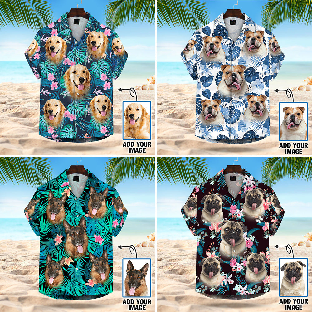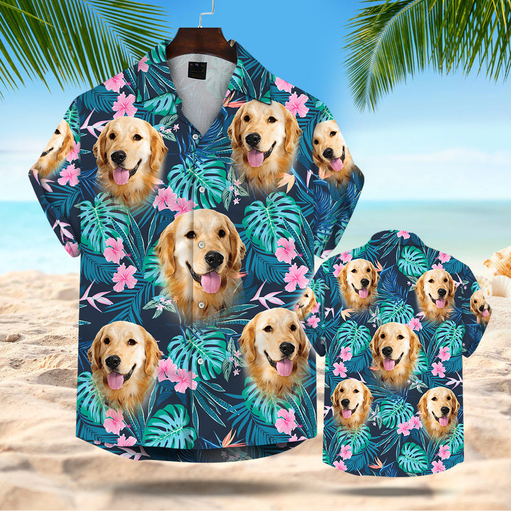 Custom Dog Cat Face Leaves & Flowers Custom Hawaiian Shirt With Multiple Faces