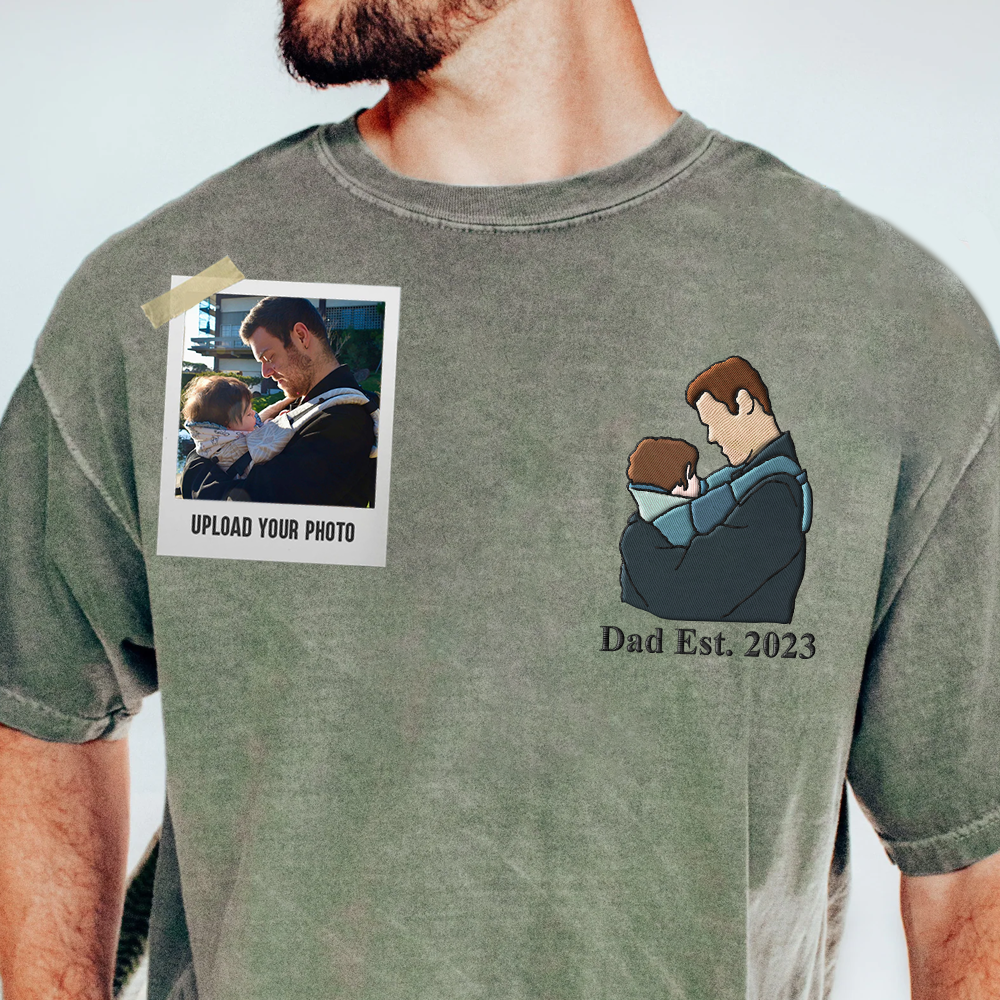 Custom Embroidered Portrait Photo Shirt Father and Son