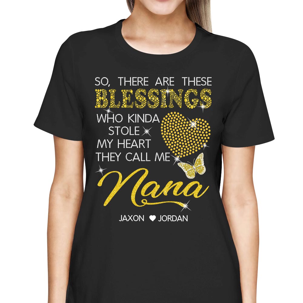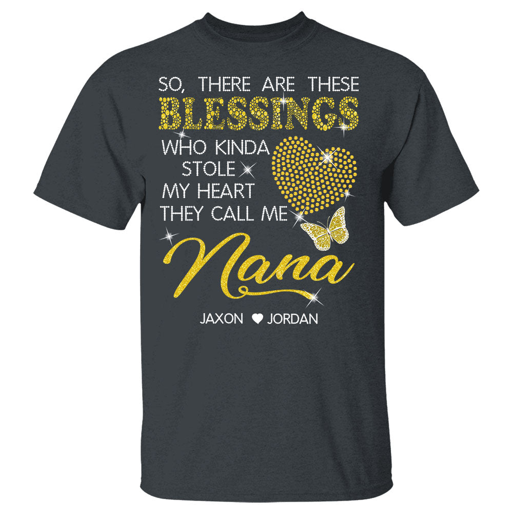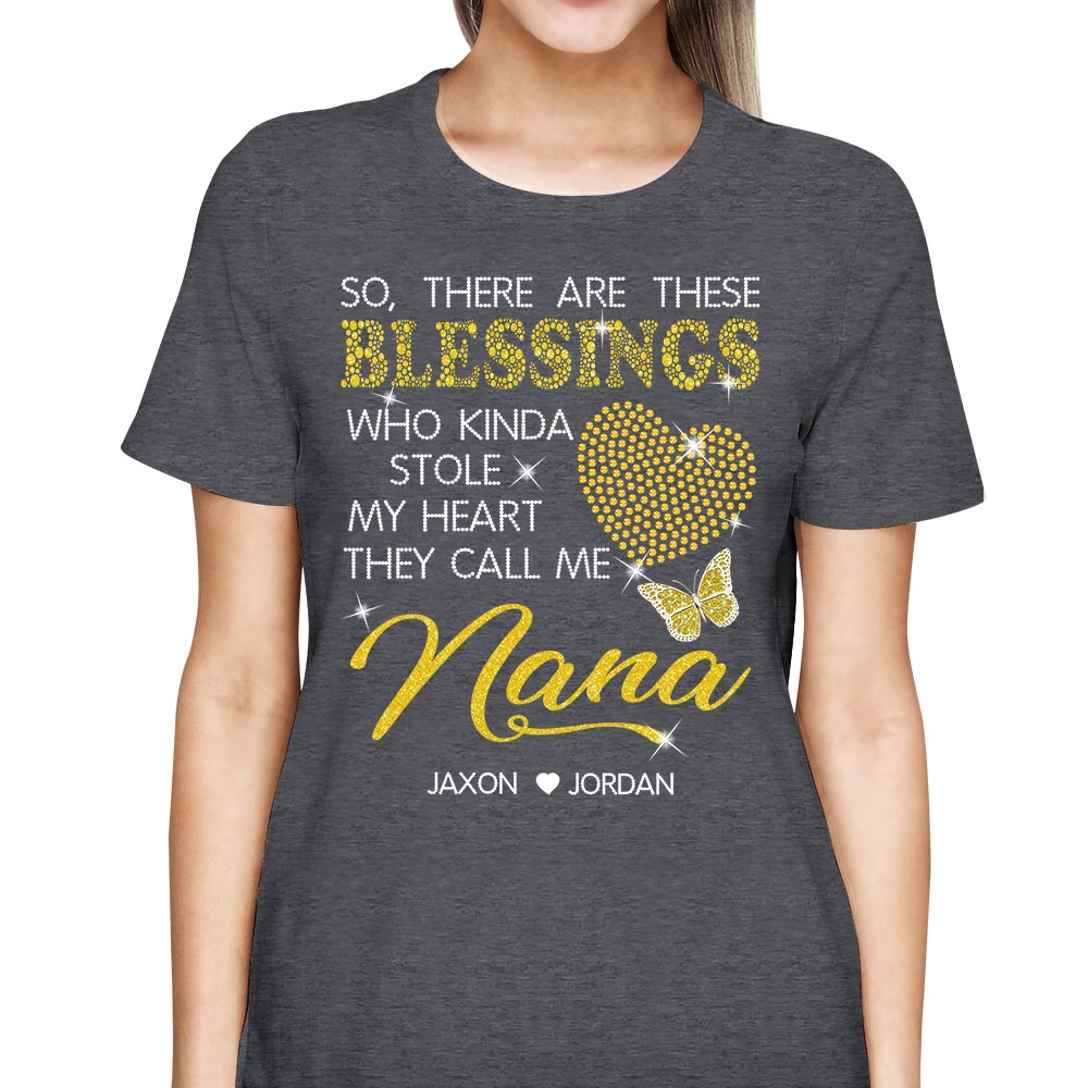 Personalized Nana Crystal Shaped Heart T Shirt So There Are These Blessings Who Kinda Stole My Heart They Call Me Nana Shirt