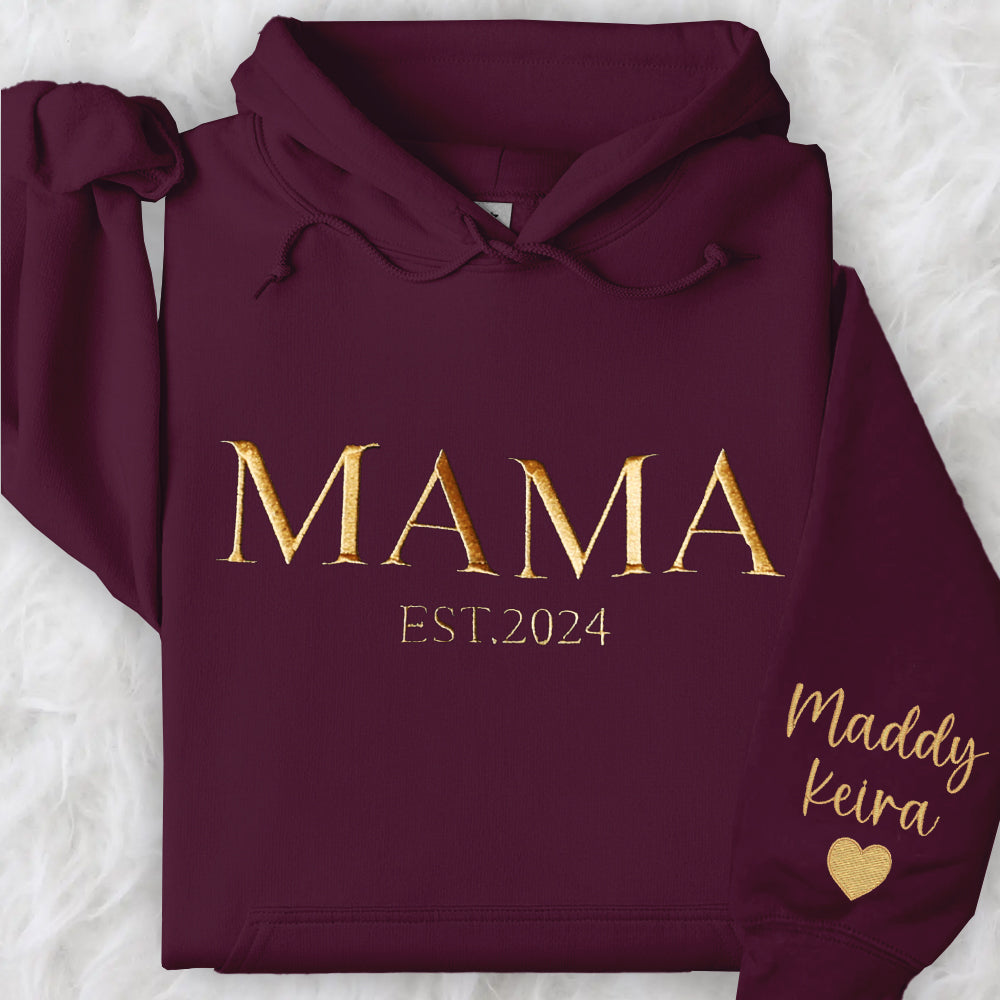 Custom Mama Embroidered Hoodie Sweatshirt With Date Unique Keepsake For Mom Mother's Day Gift Ideas