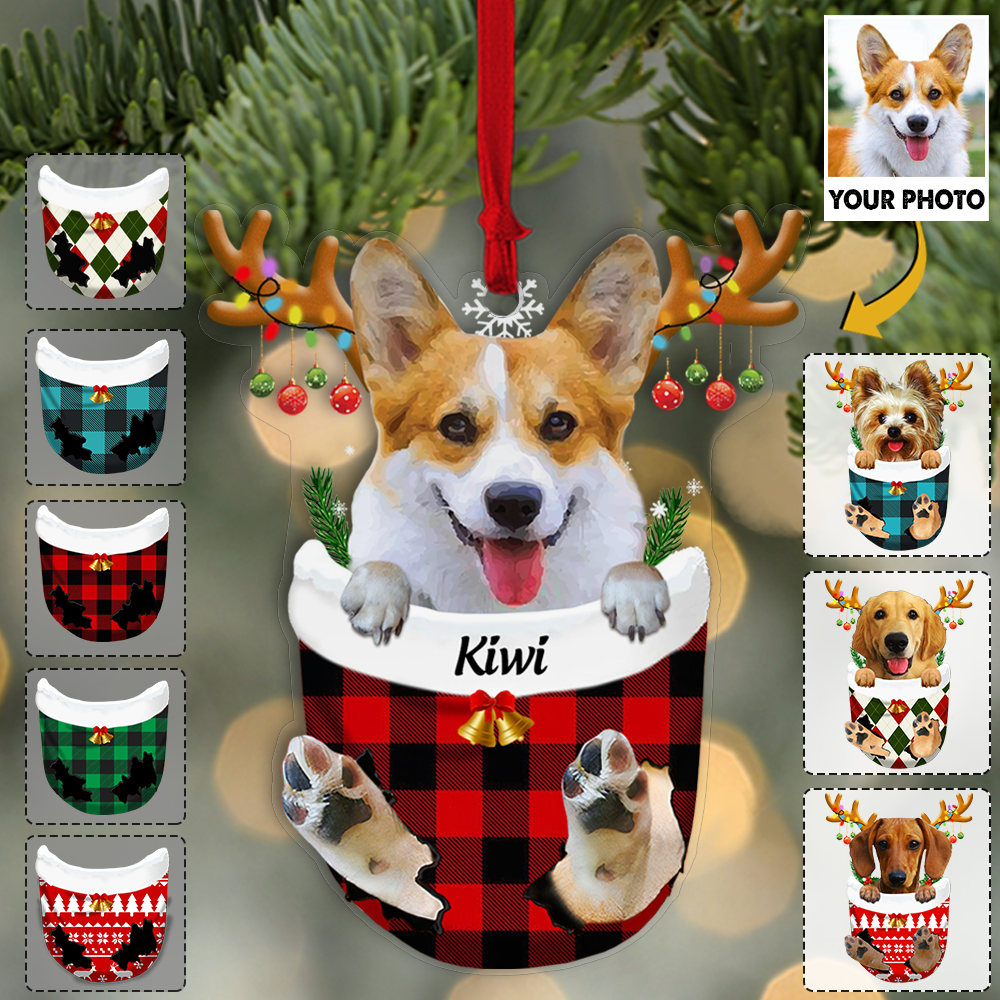 Custom Ornament from Pet Photo - Dog Lovers Pet Lover Gifts - Dog In Snow Pocket Christmas Ornament