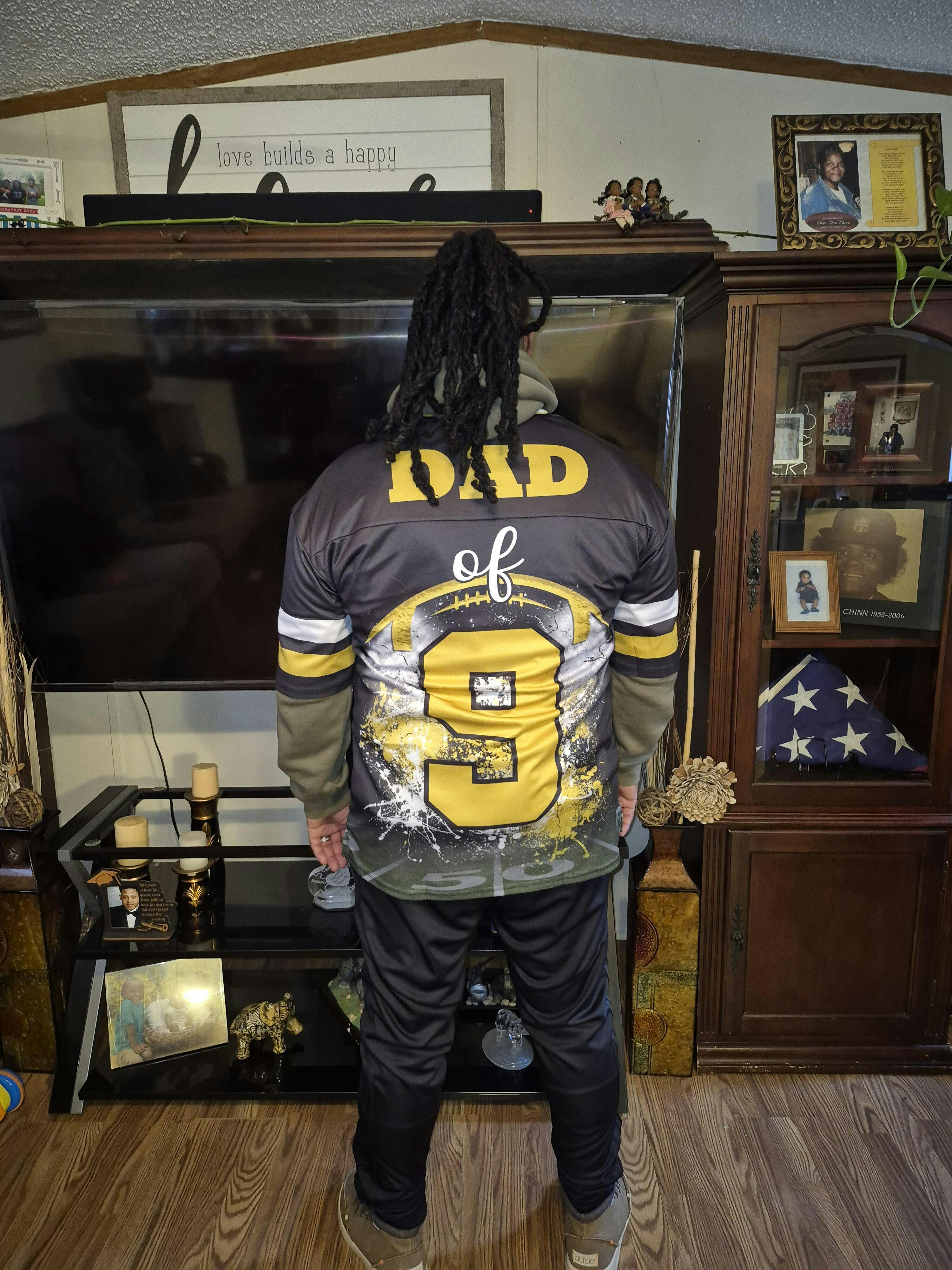 - This custom football jersey boasts a classic full-button design that includes your personal name and number, ensuring a one-of-a-kind look.