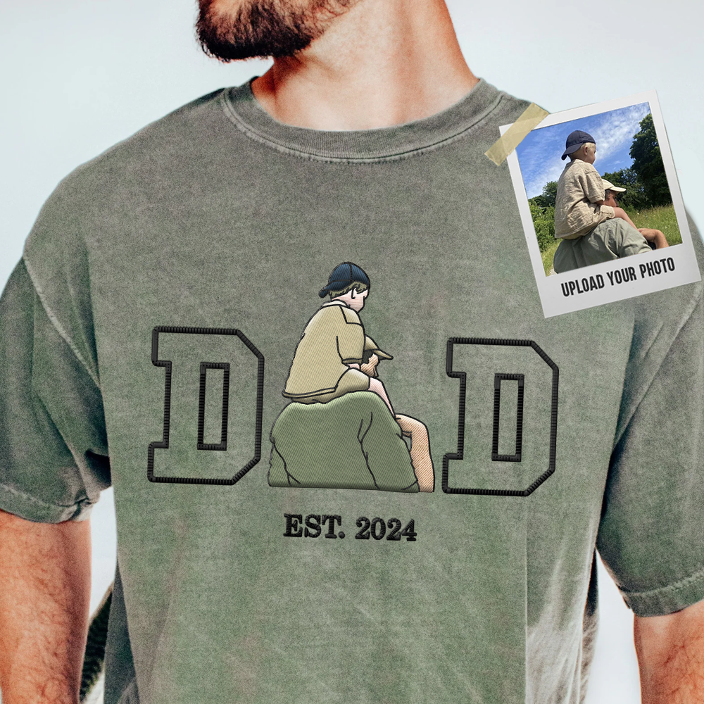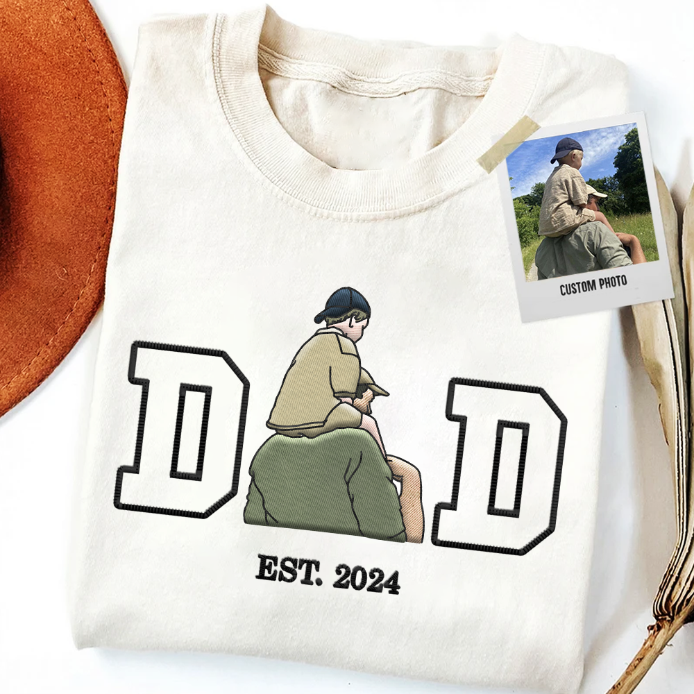 Embroidered Dad T-shirt, Embroidery Photo, Custom Embroidered Shirt, Custom Photo Shirt, Custom Picture, Fathers Day Shirt Vr3