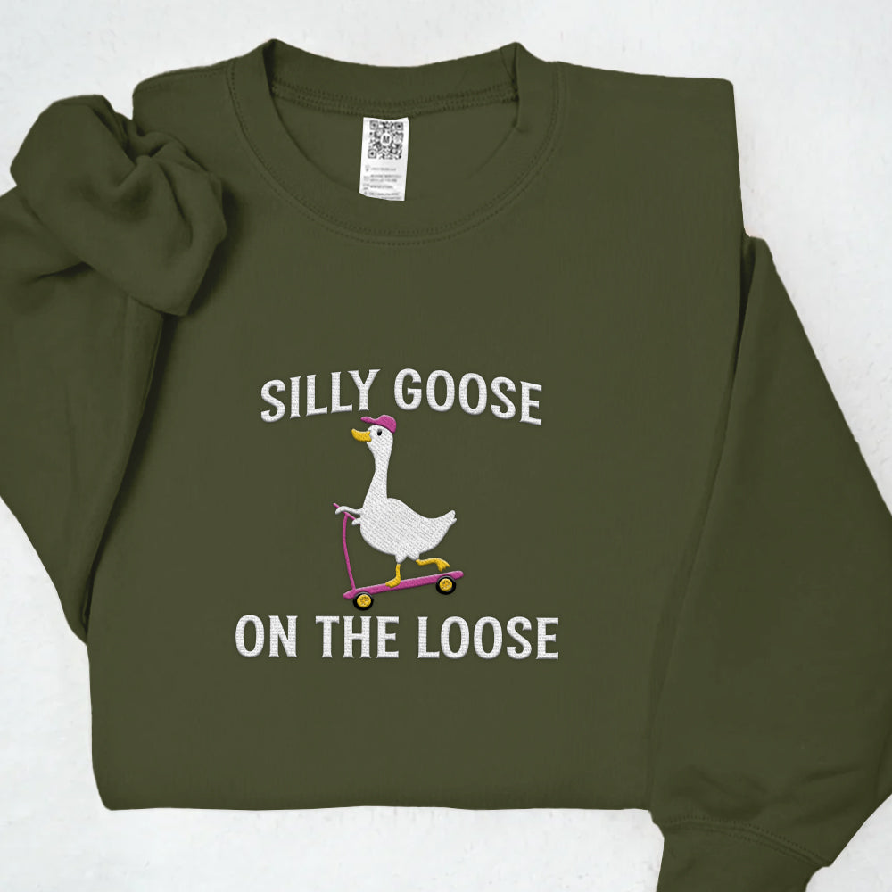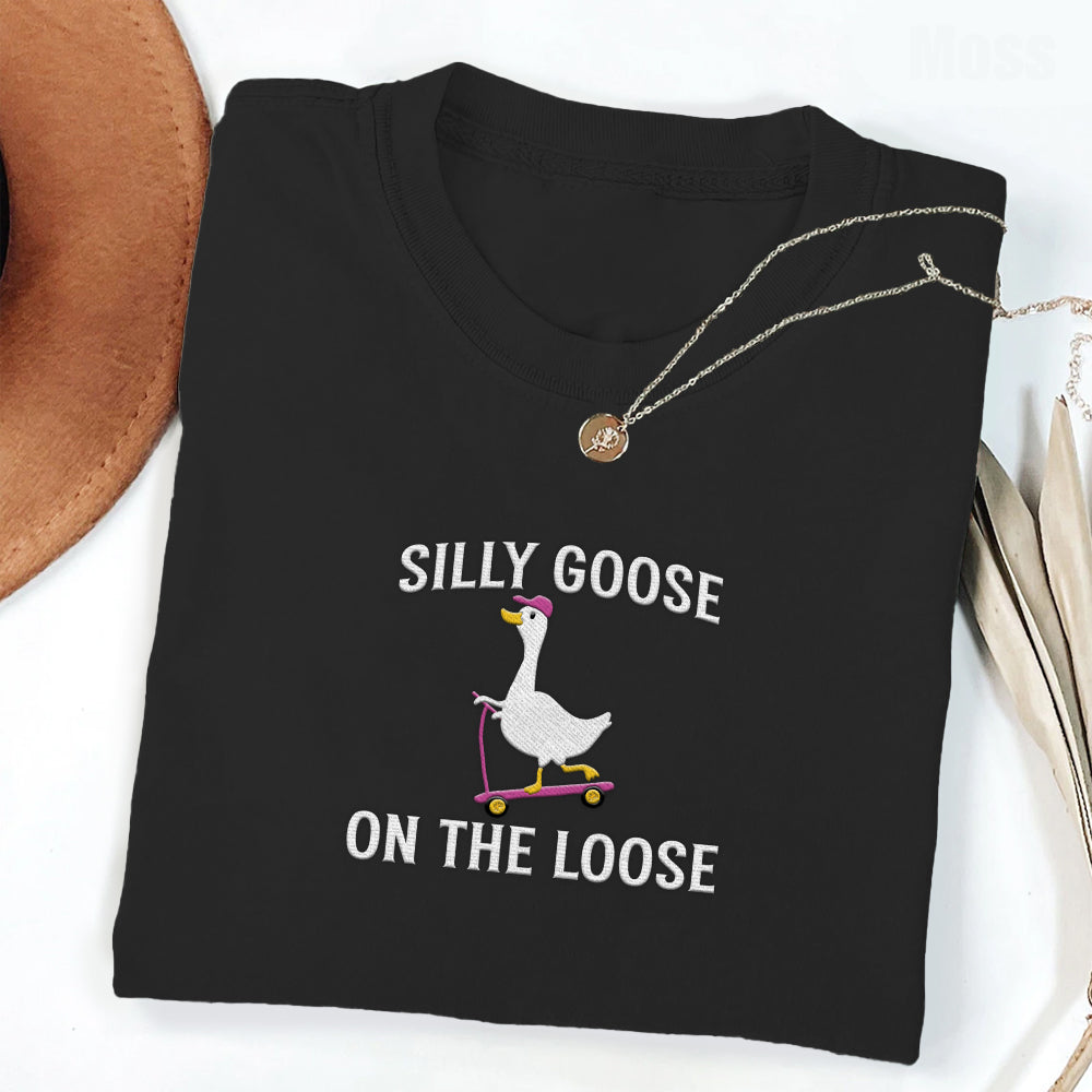 Embroidered Shirt Silly Goose On the Loose T-Shirt Embroidered Goose Crewneck Shirt Silly Goose Shirt Funny Shirt Gift