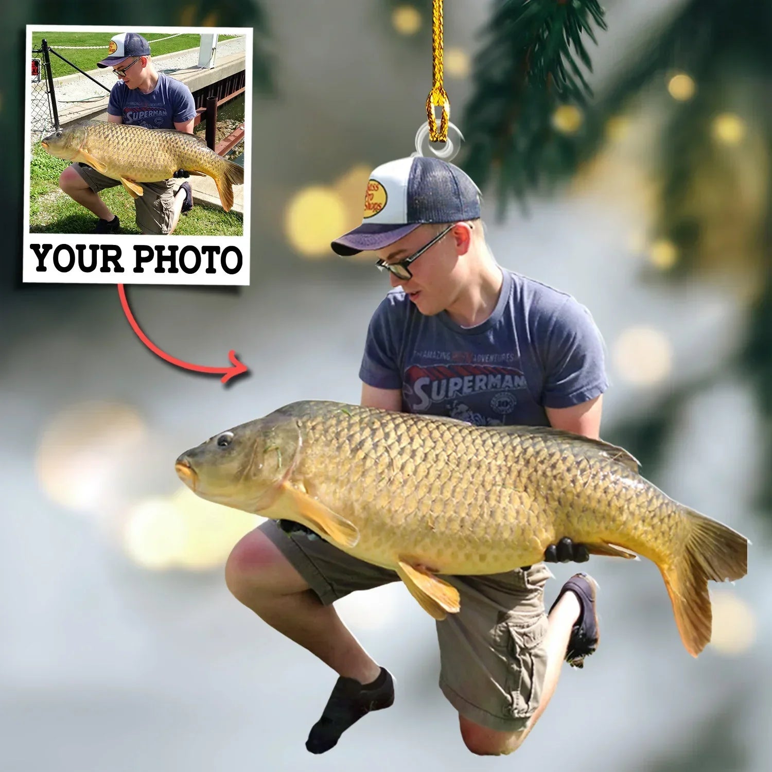 Fishing Custom Photo Ornament Gift For Fishing Lovers, Fisherman