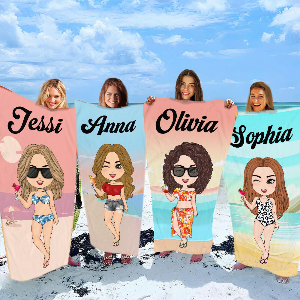 Girls Custom Beach Towel - Gift For Besties Best Friends Sisters