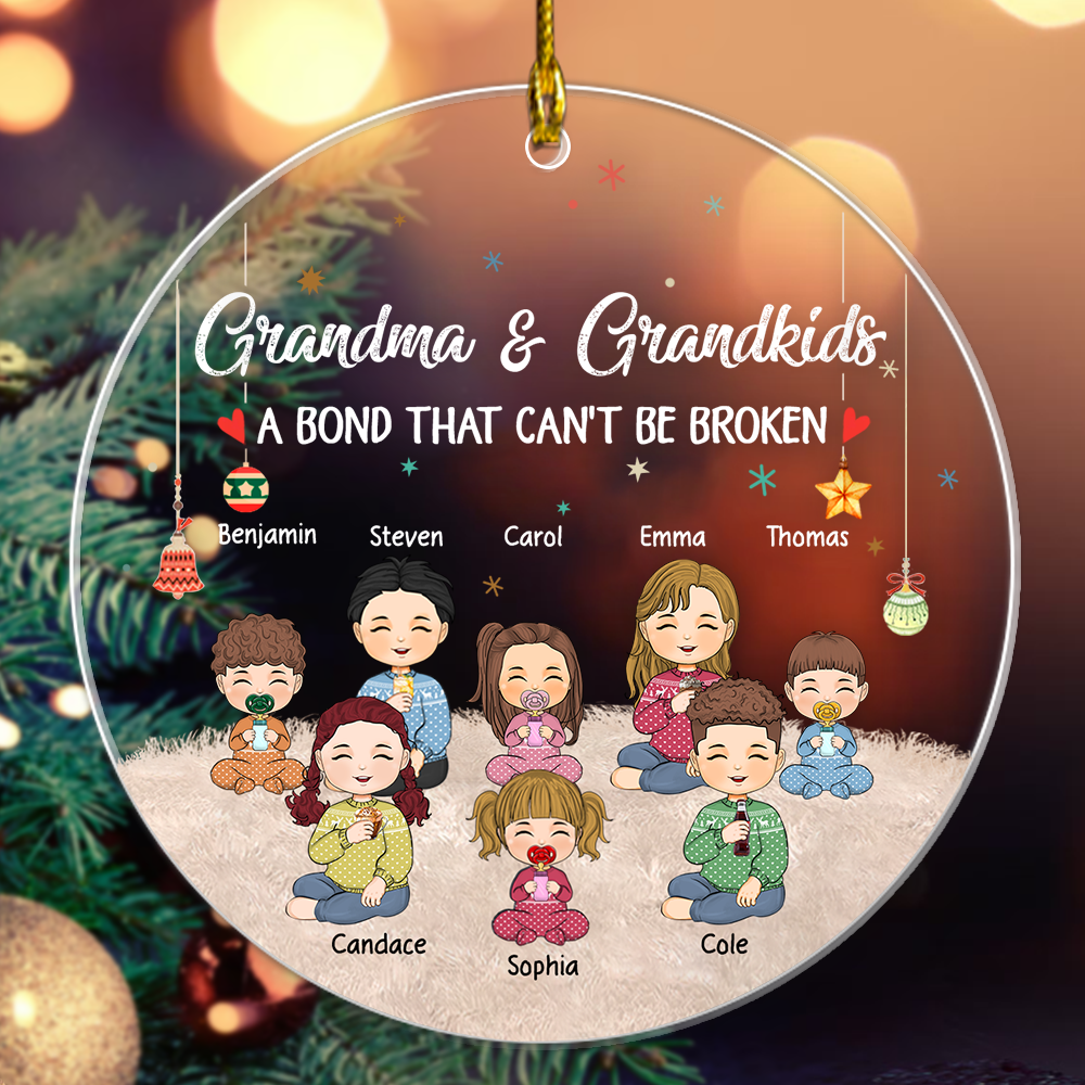 Grandma And Grandkids A Bond That Can't Be Broken Personalized Circle Acrylic Ornament