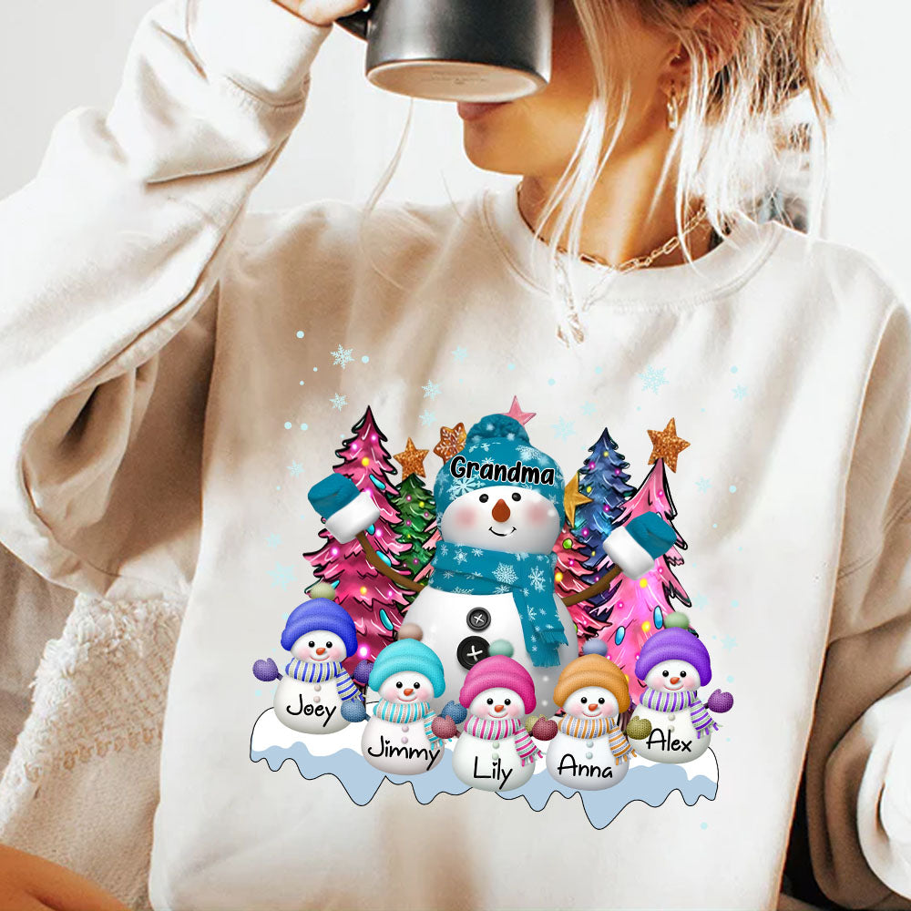 Grandma Snowman & Kid Christmas Tree Personalized Shirt