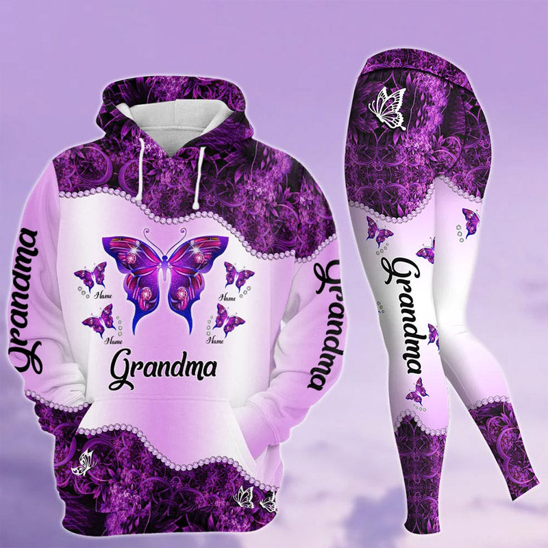 Grandma Butterflies Custom All Over Print Shirt Legging For Grandma Nana