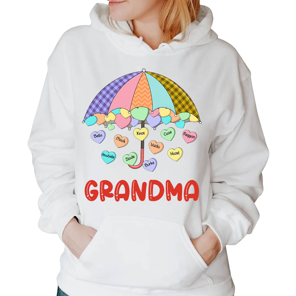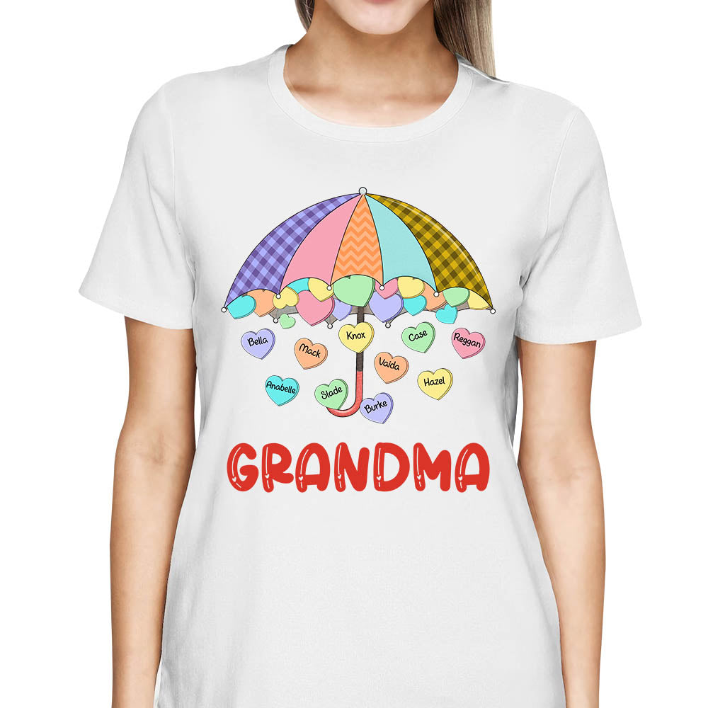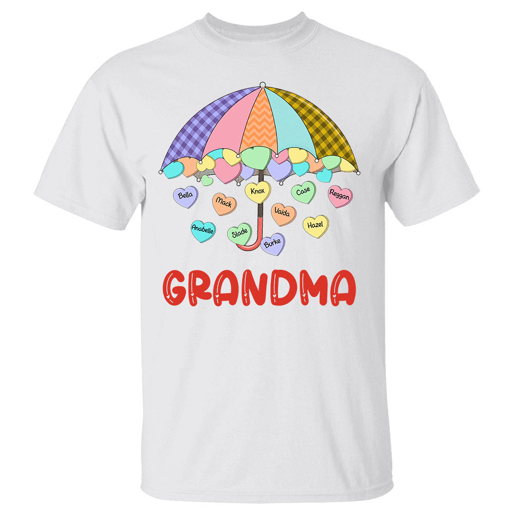 Grandma's Sweethearts Umbrella Colorful Hearts Candy Personalized Shirt For Nana