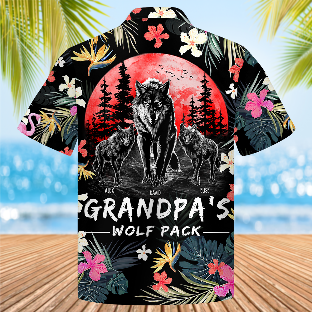Grandpa Wolf Pack Personalized Hawaiian Shirt