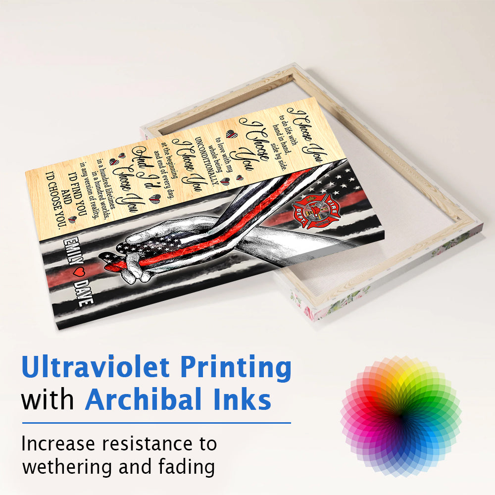 Hand In Hand I Choose You To Do Life With Hand In Hand, Side By Side Personalized Canvas Poster For Firefighters K1702