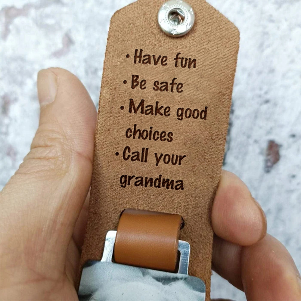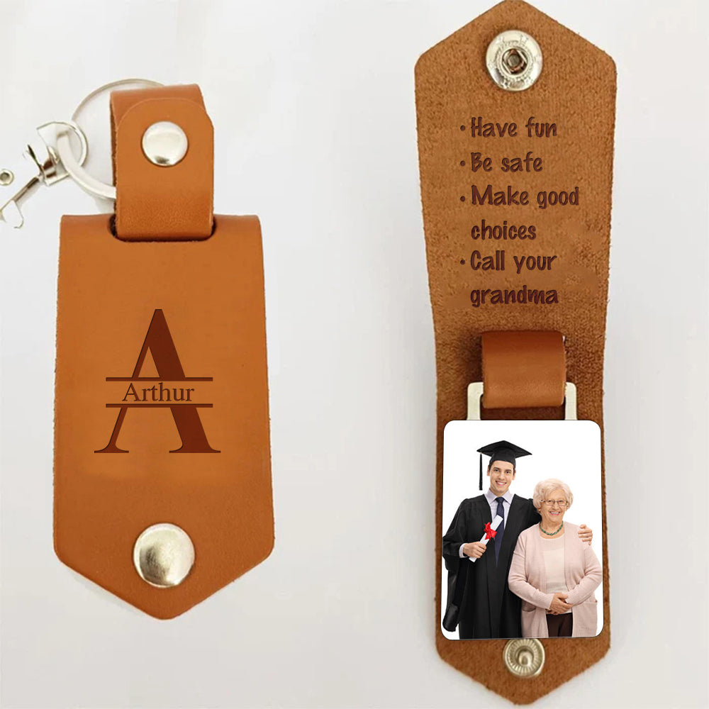 Have Fun, Be Safe, Make Good Choices, Call Your Grandma - Personalized Leather Keychain - Graduation Gift
