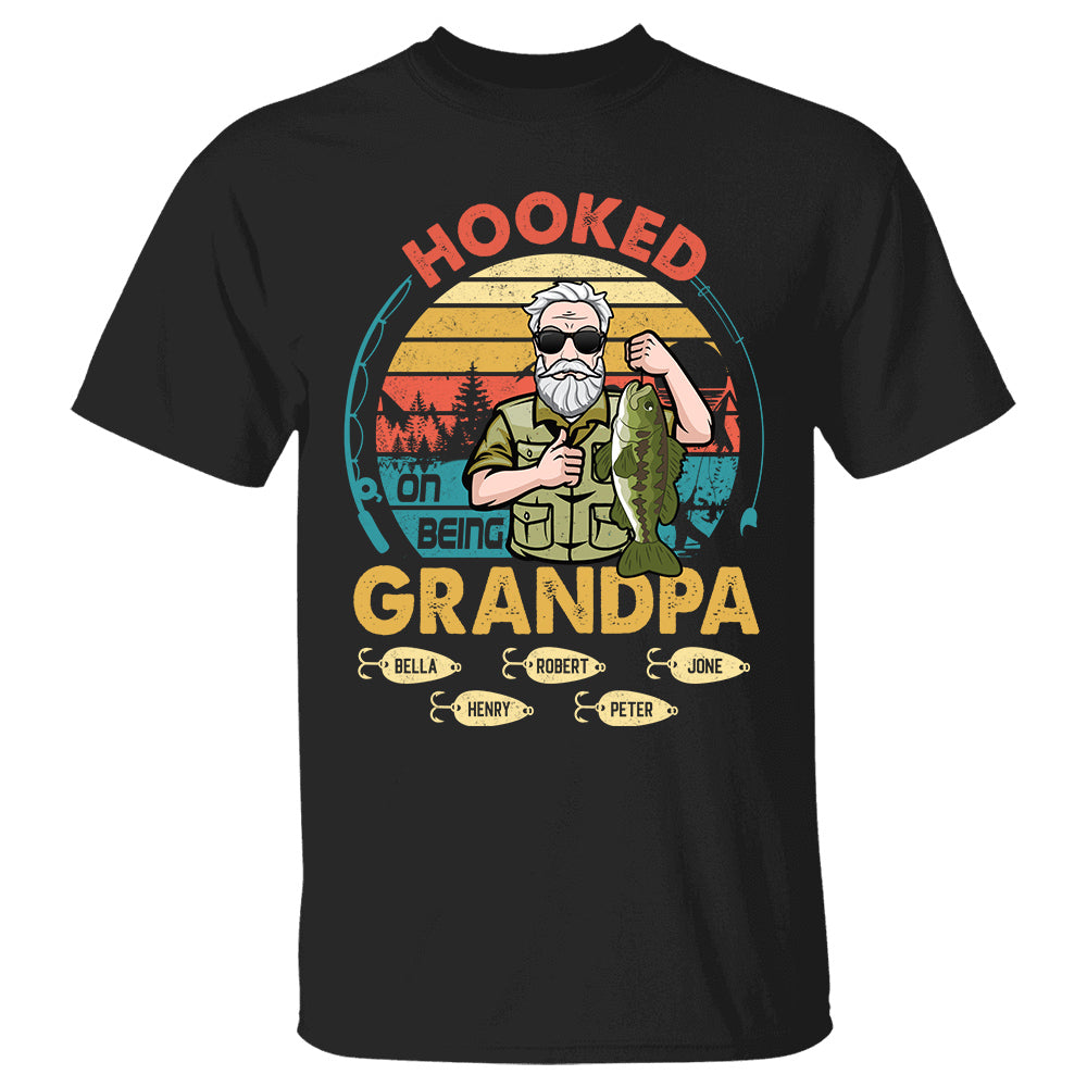 Hooked On Being Grandpa Personalized Shirt Father's Day Fishing Shirt K1702