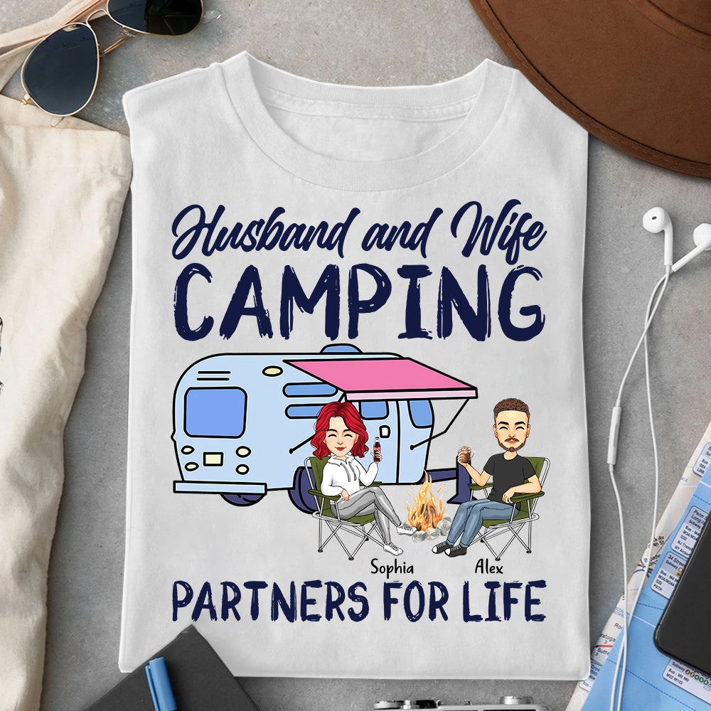 Husband and Wife Camping Partners For Life - Personalized Shirt For Couple, Camping Lovers