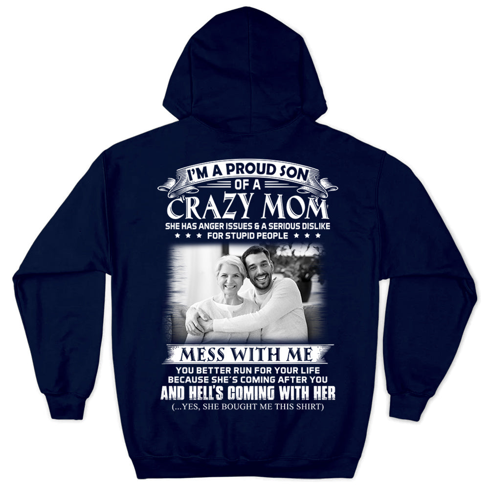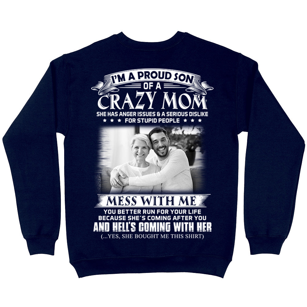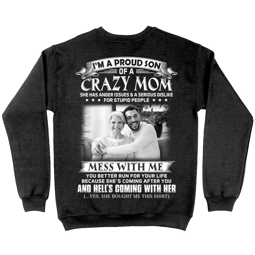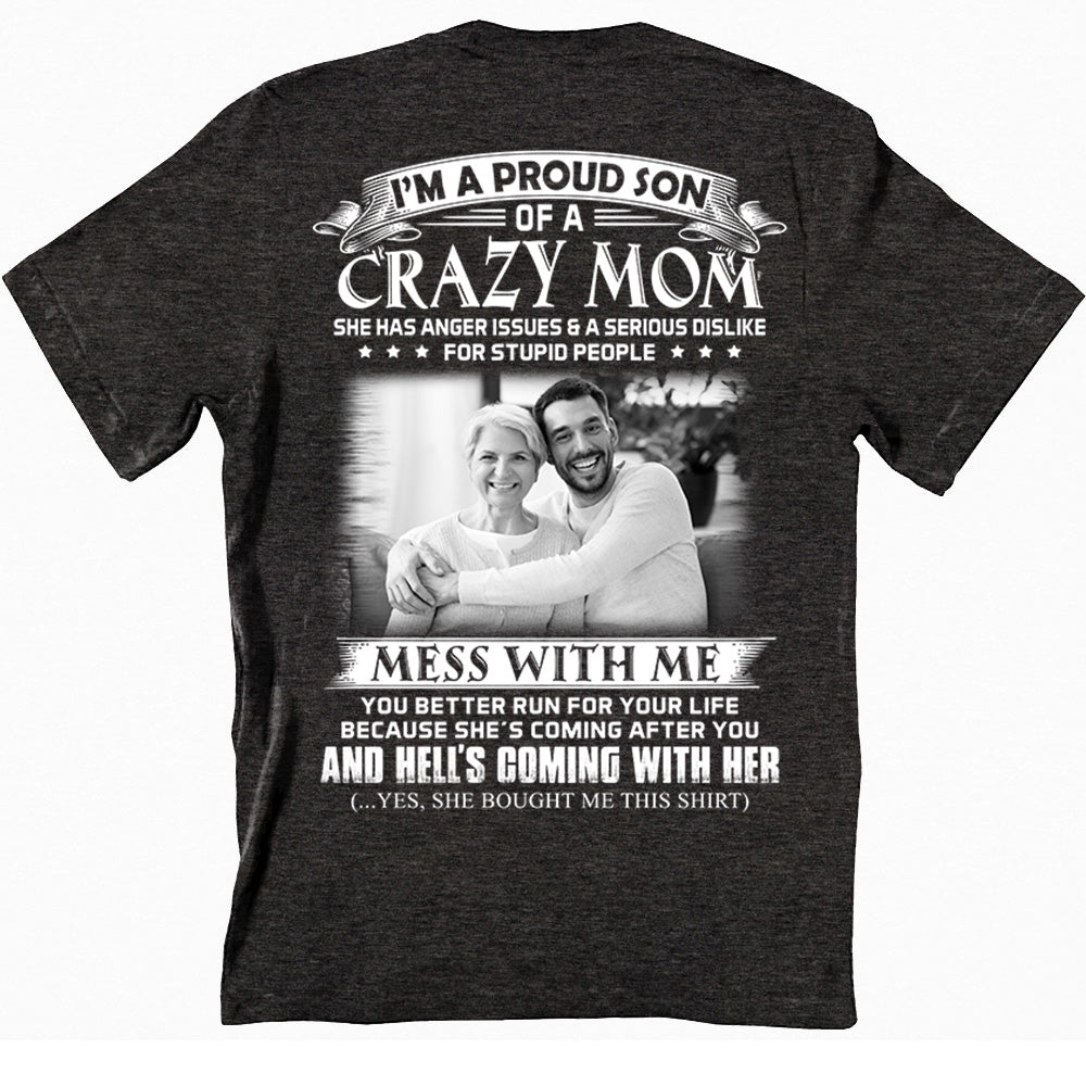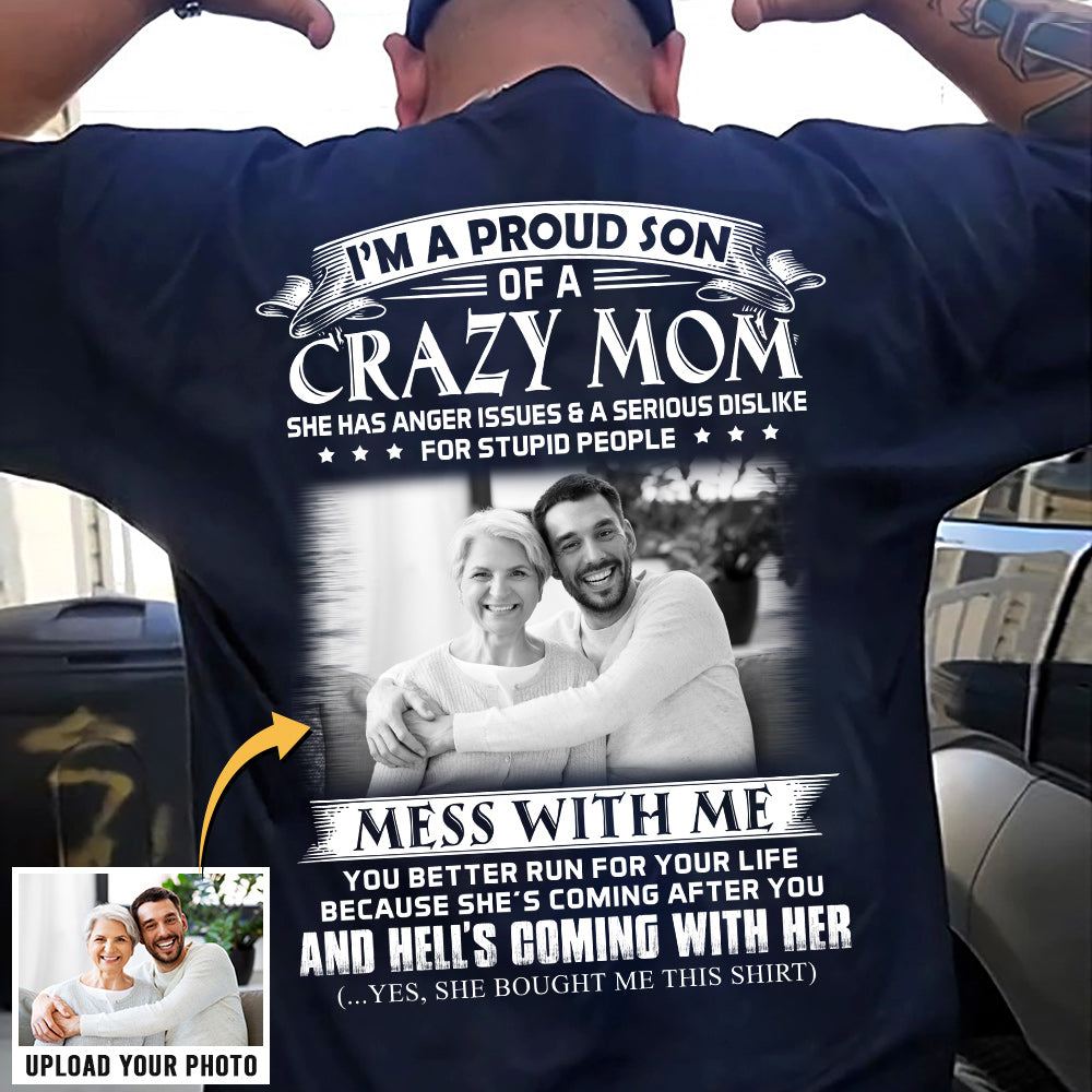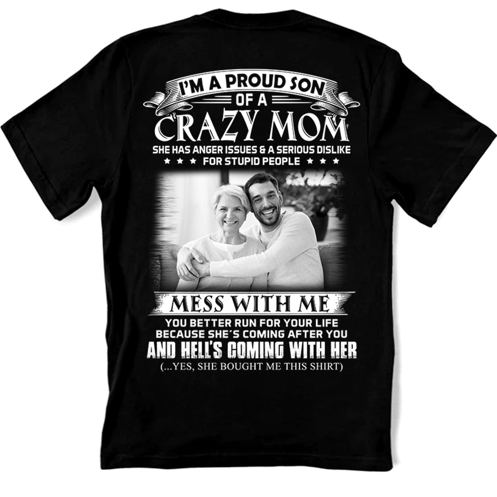 I Am A Proud Son Of A Crazy Mom - Custom Photo Shirt Gift For Son - Personalized Gifts For Sons