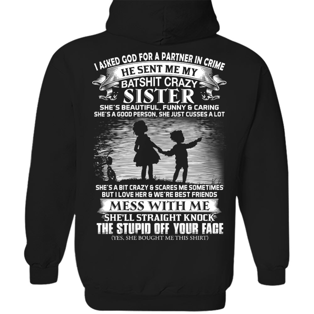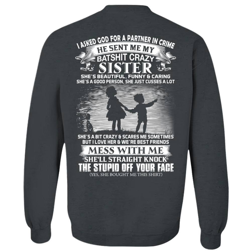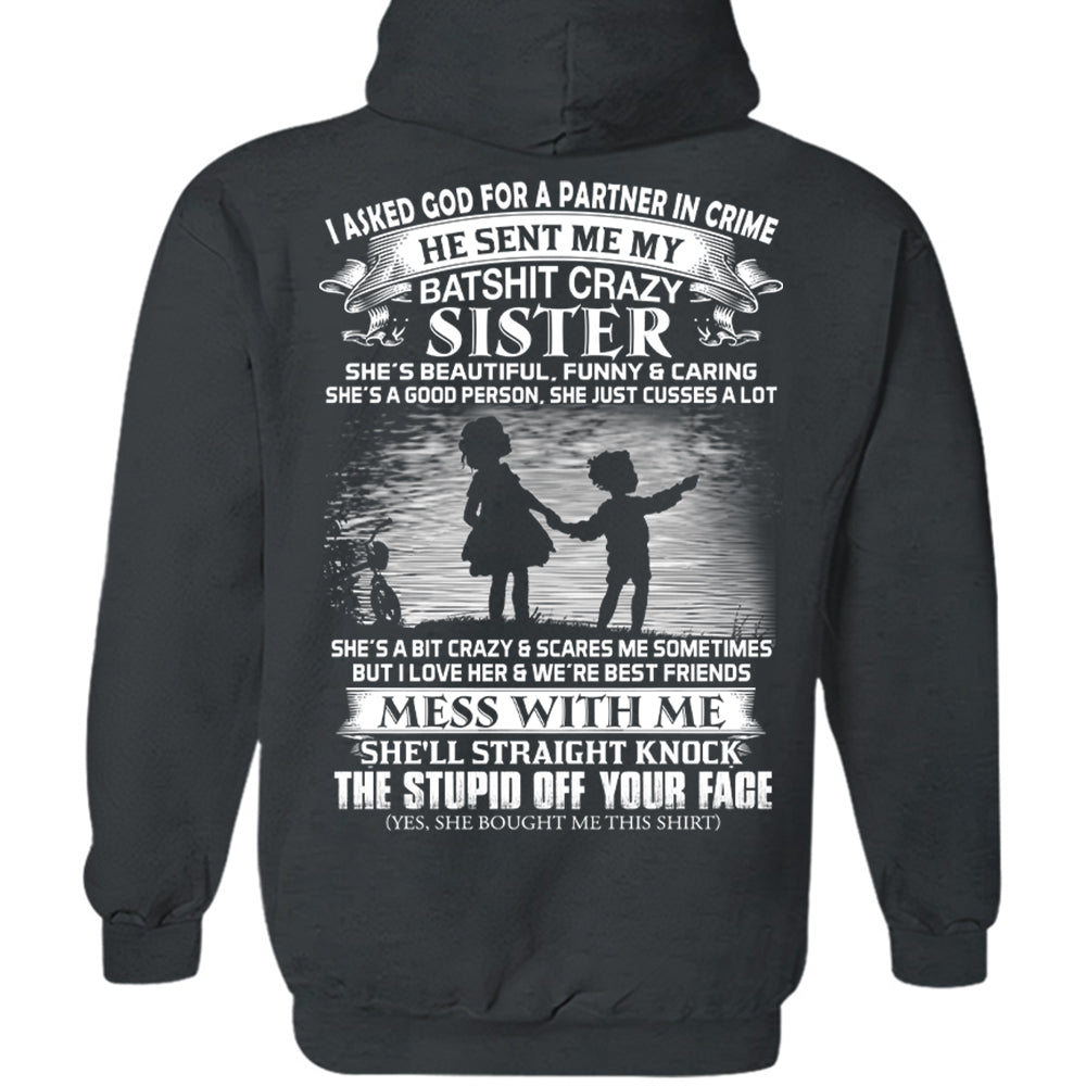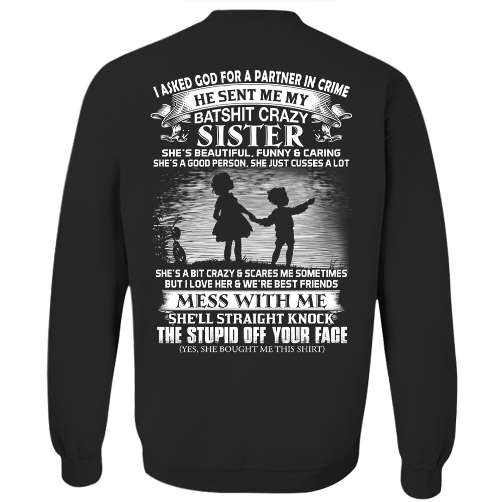 I Asked God For A Partner In Crime He Sent Me My Batshit Crazy Sister Shirt Perfect Gift For Sister & Brother
