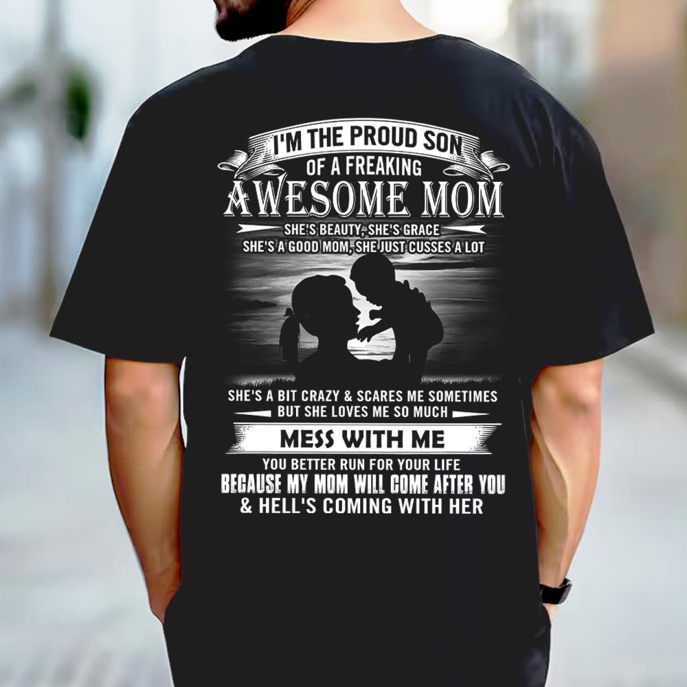 I'm The Proud Son Of A Freaking Awesome Mom Shirt Perfect Gift For Son