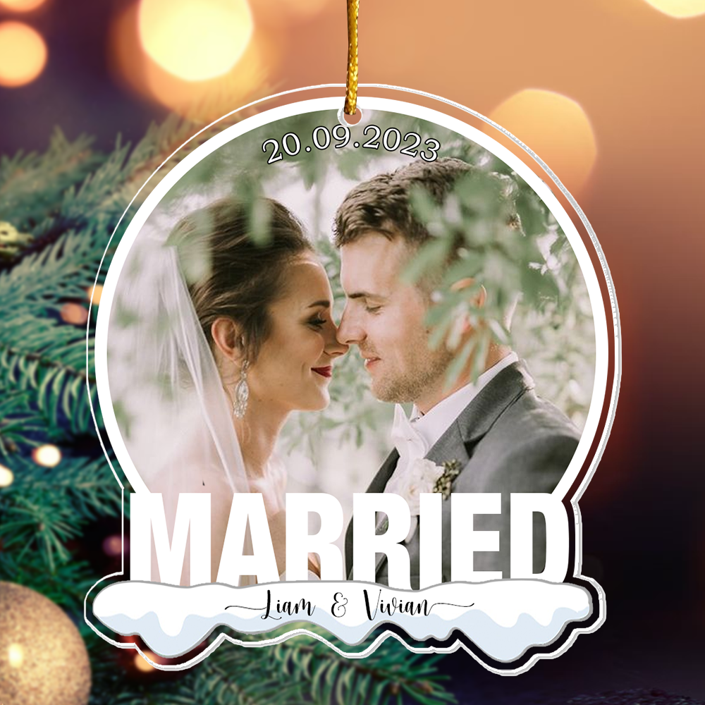 Just Married Custom Photo Ornament - Personalized Custom Shaped Acrylic Ornament