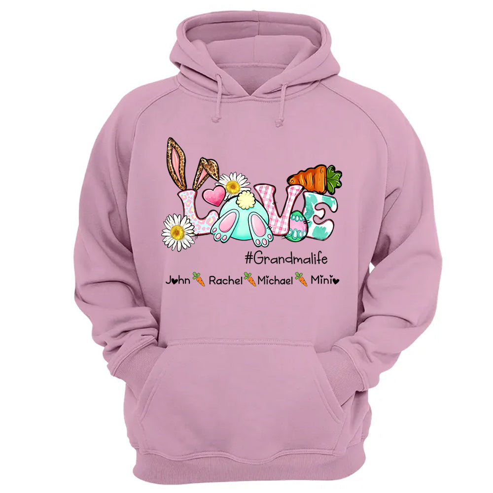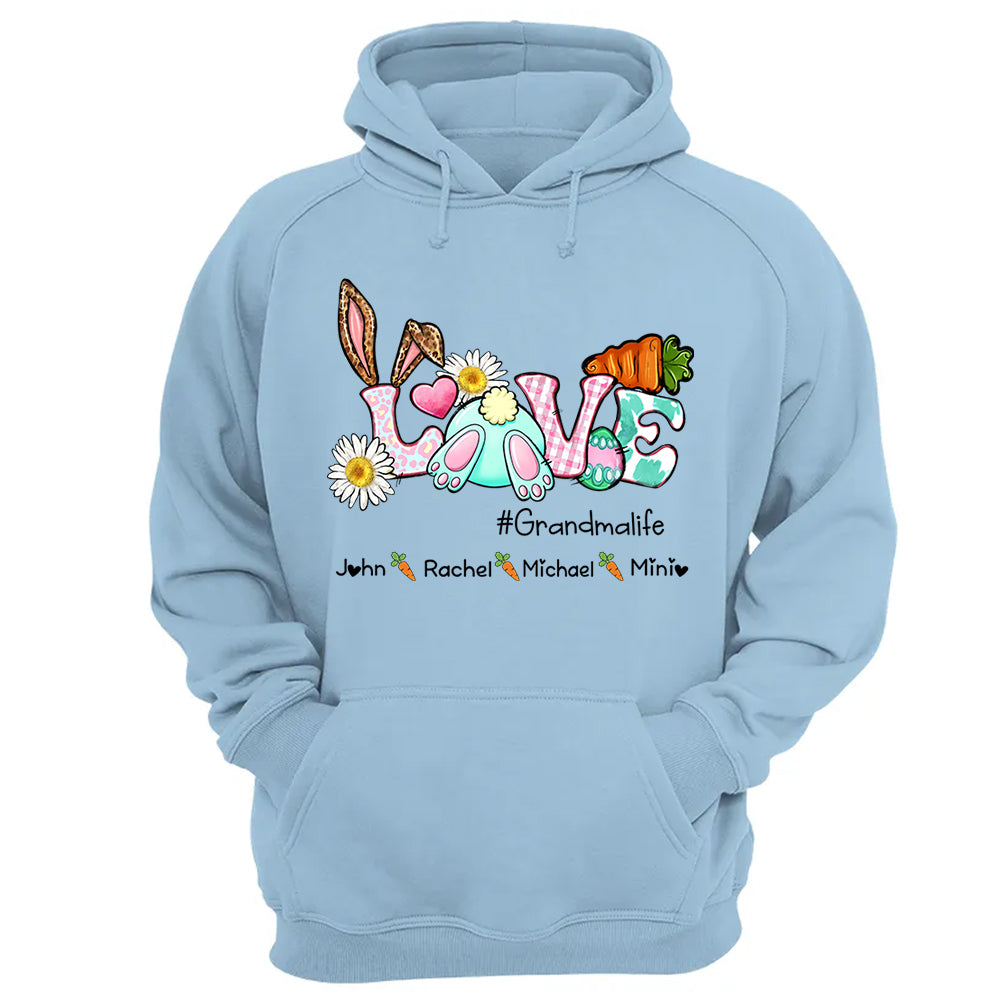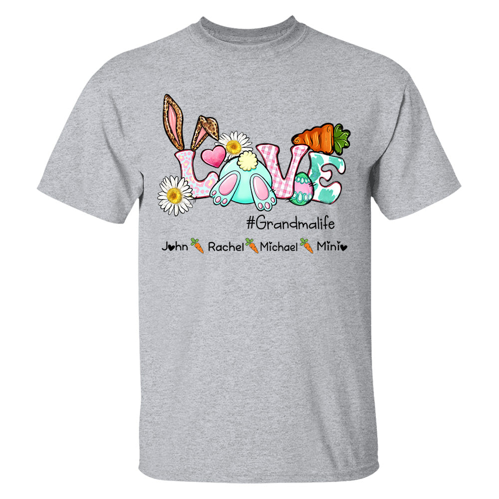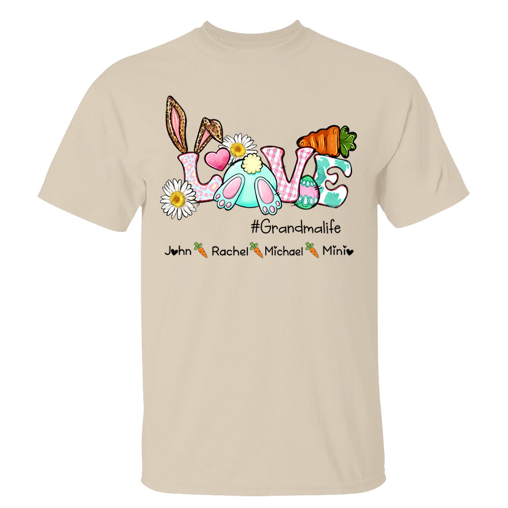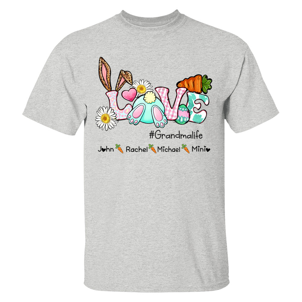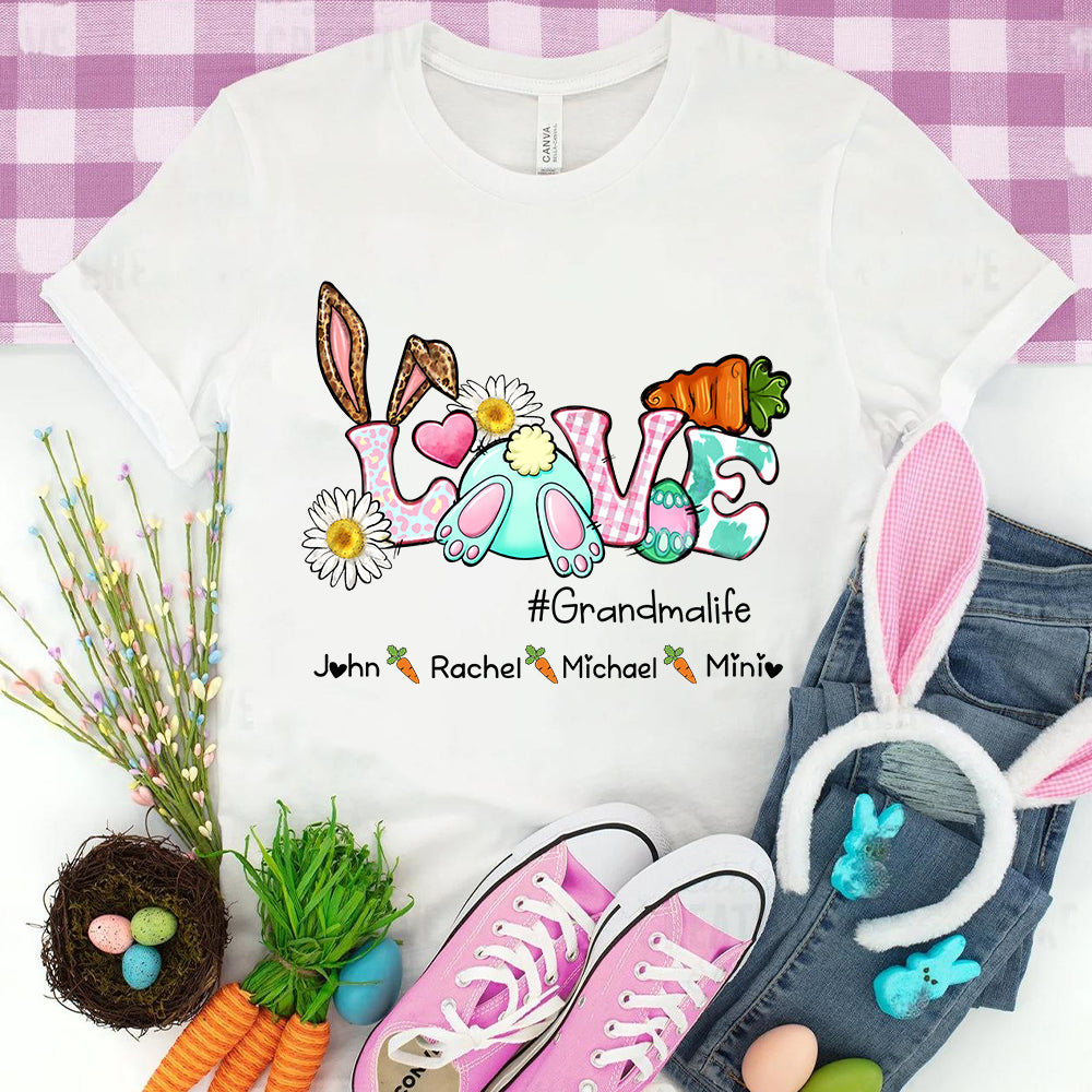 Love Easter Bunny Grandmalife Shirt, Easter Day Custom Shirt, Easter Bunny Shirt With Kids Name