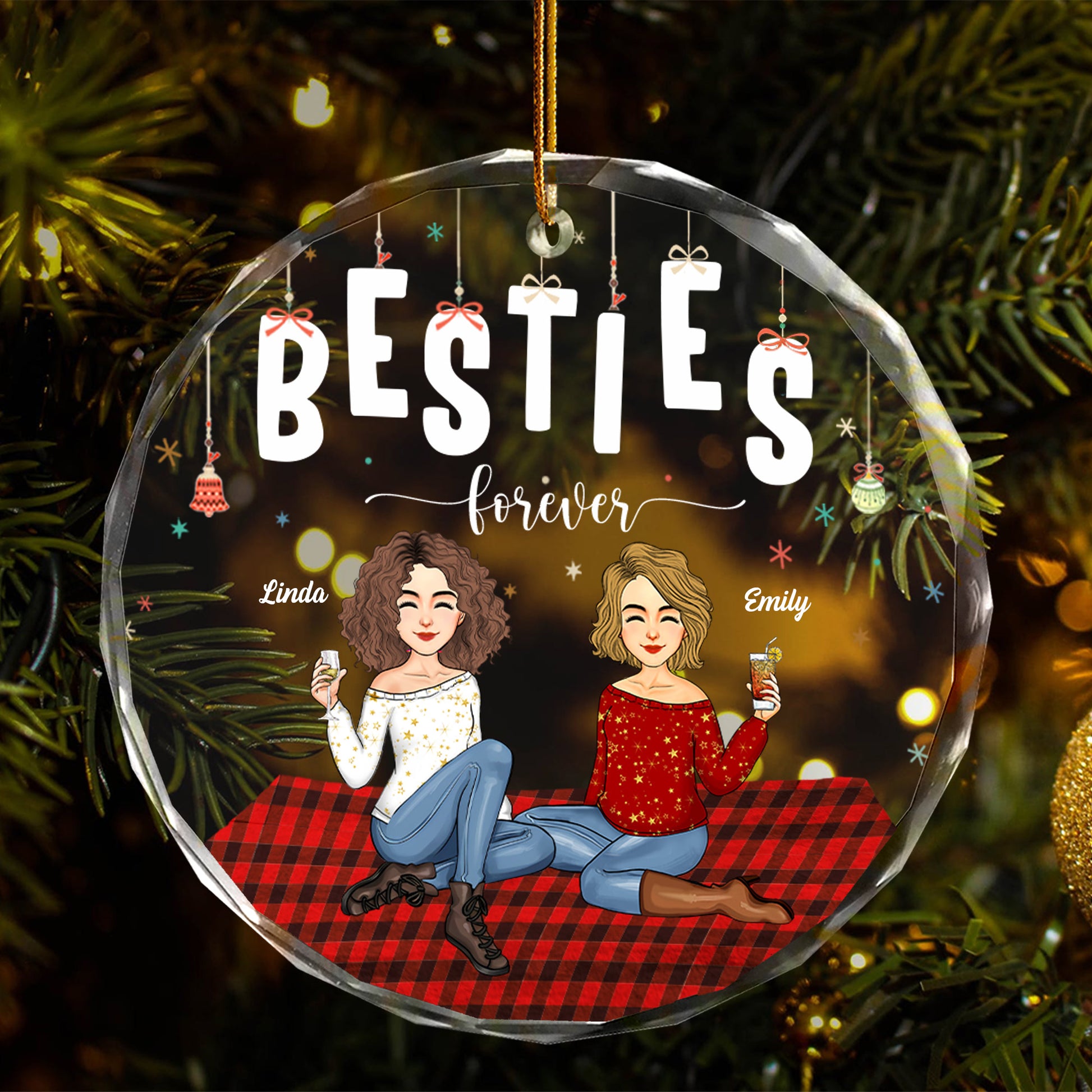 Luxury Ornament Besties Forever - Personalized Glass Ornament Gift For Besties, Best Friends