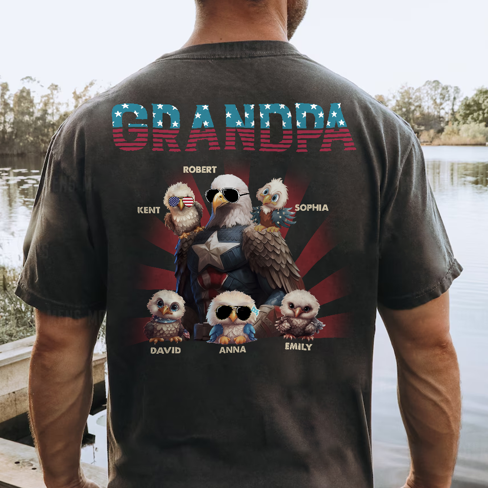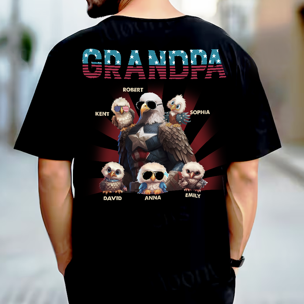 Papa America Eagle Personalized Patriotic Bald Eagle Print Back Shirt
