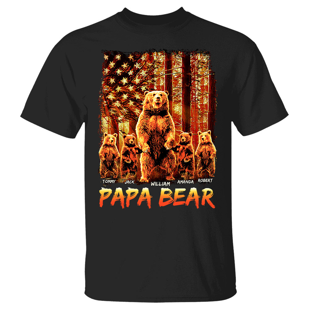 Papa Bear American The Sun Flag Personalized Shirt For Dad Grandpa Father's Day Gift H2511