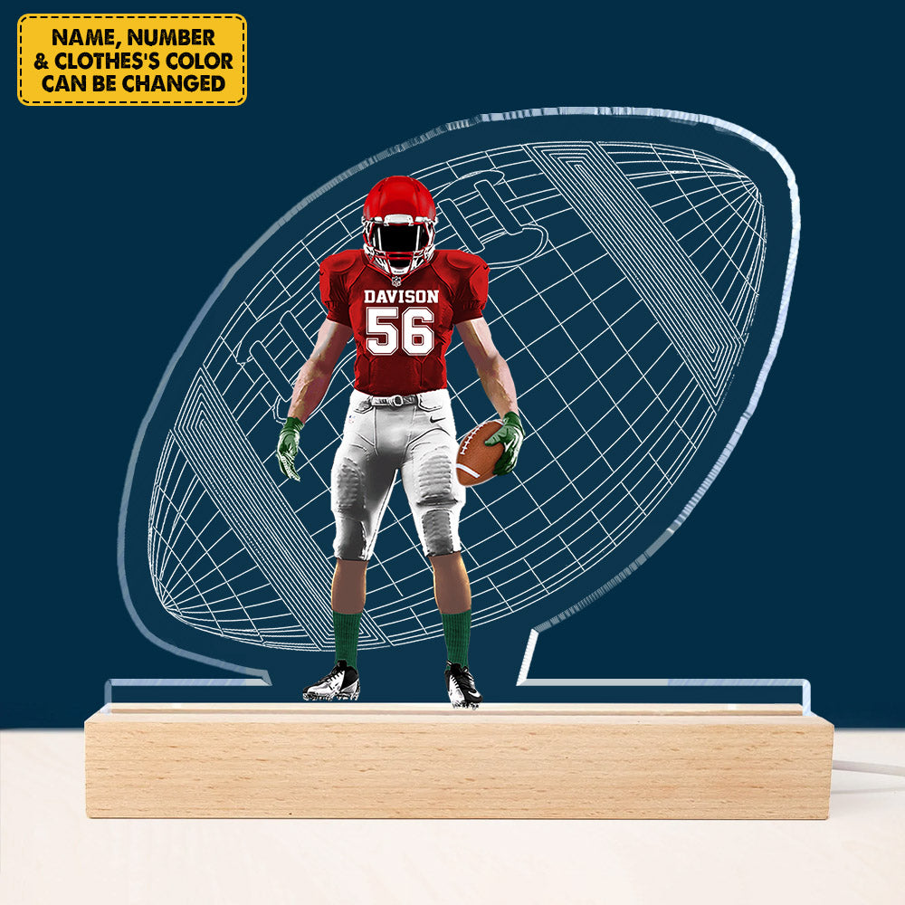 Personalized 3D Led Light Wooden Base Gift For American Football Player - Football Game Days Night Light