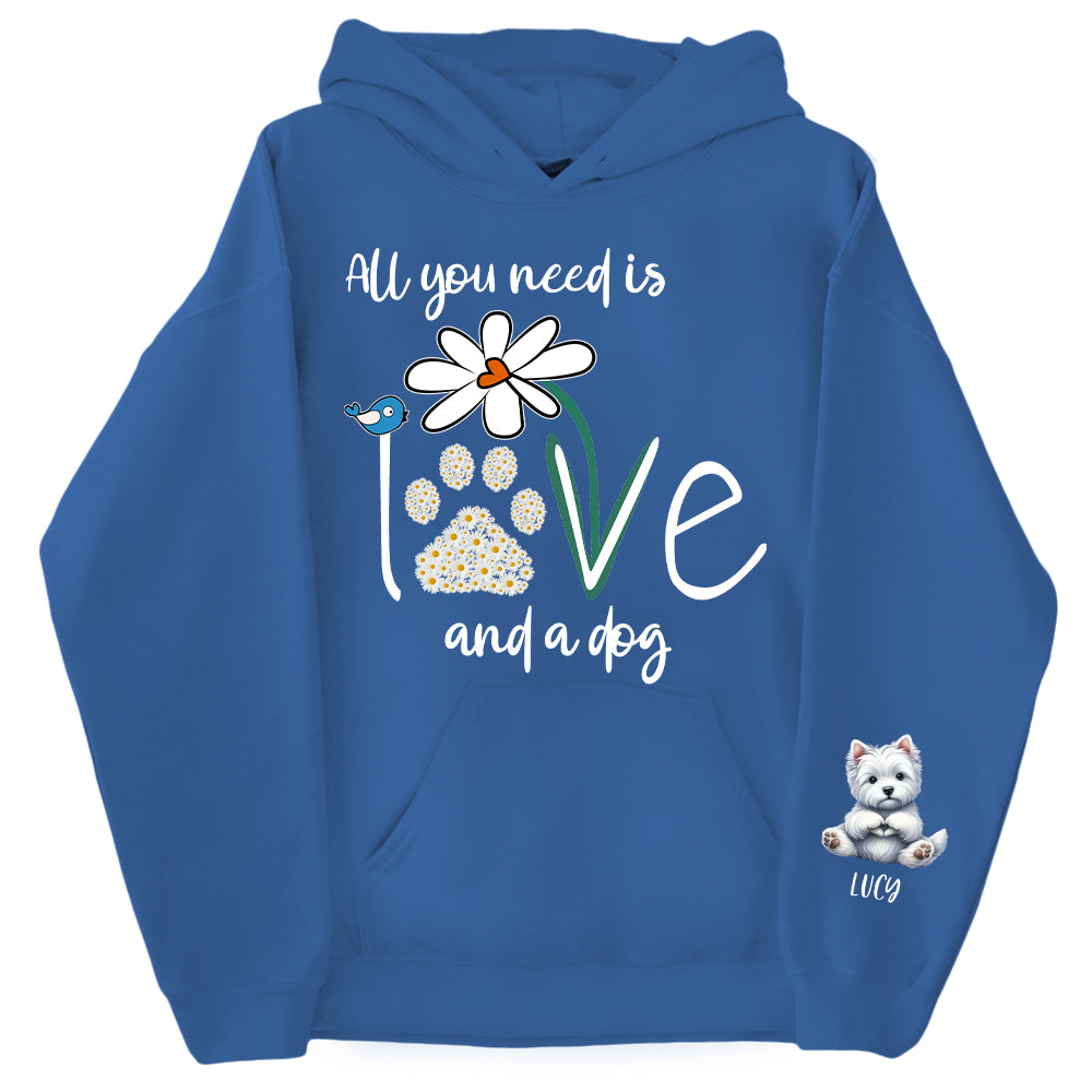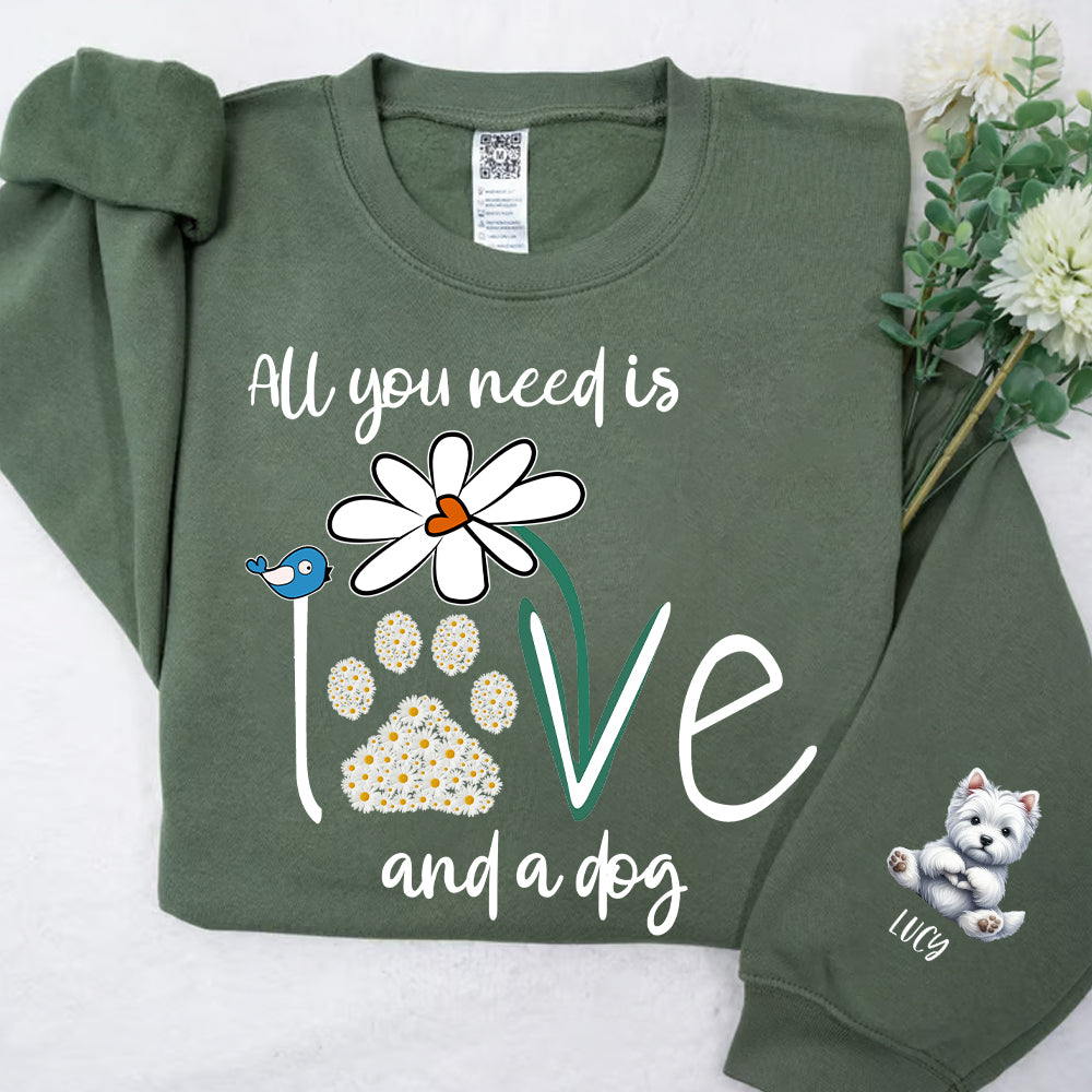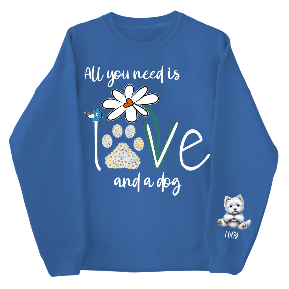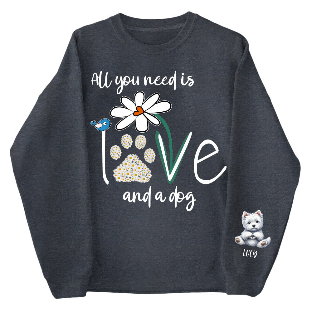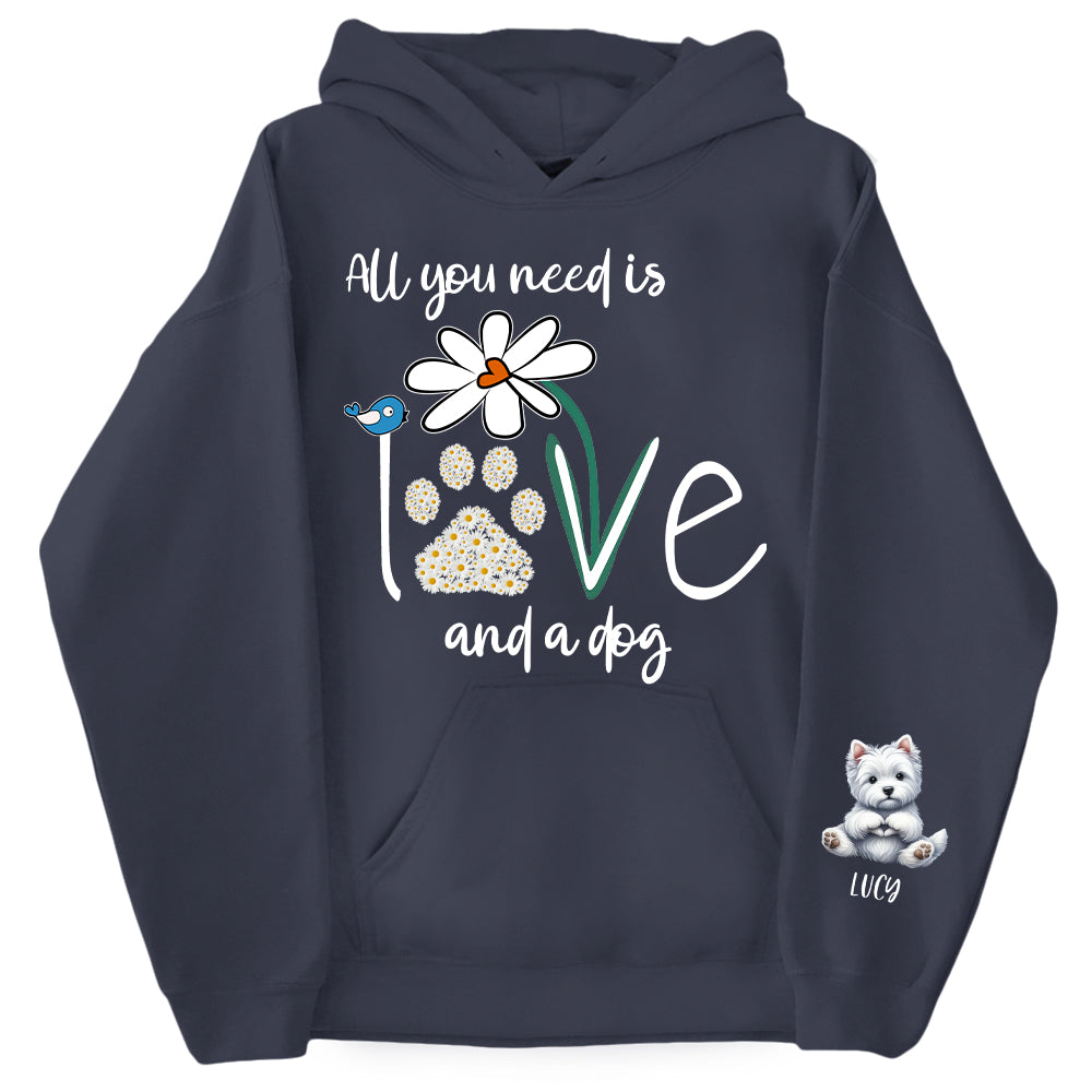 Personalized All You Need Is Love And A Your Dog Named Shirt - Dogs Giving Heart Hand Sign Cute Art Shirt For Dog Lovers