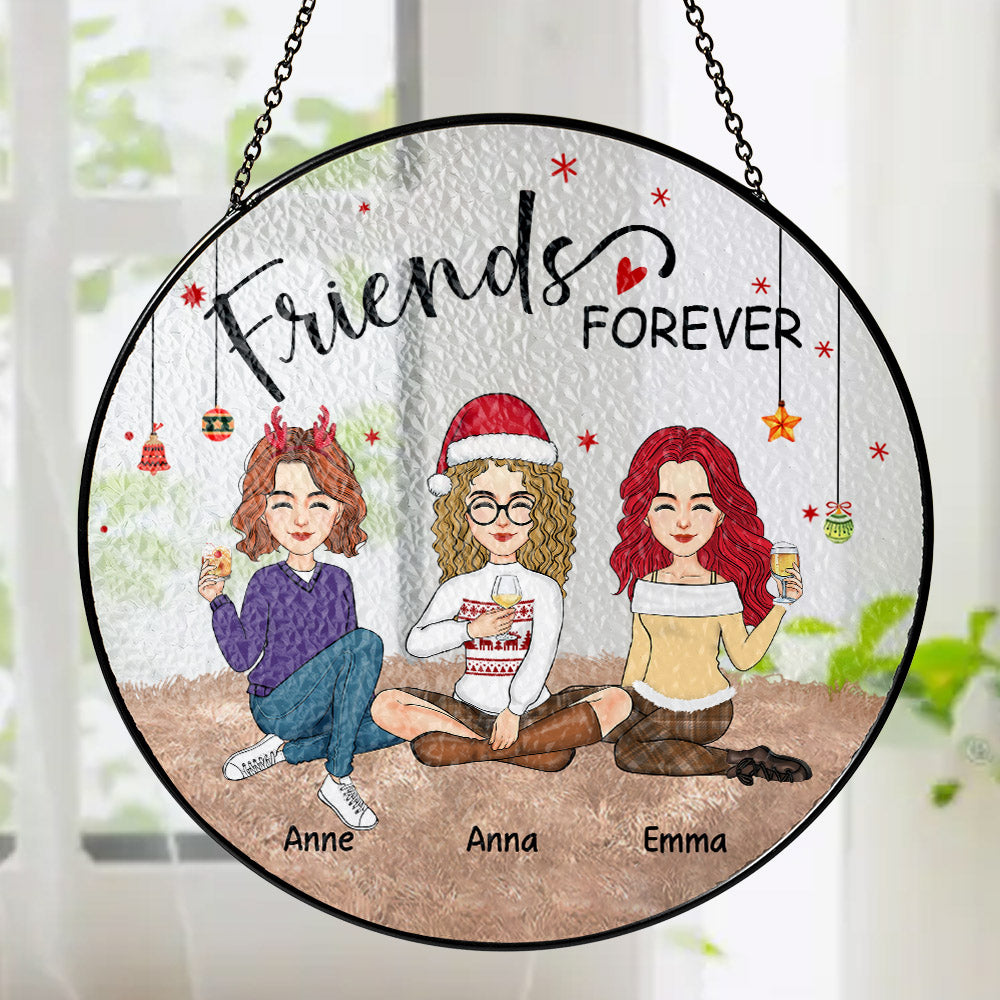 Personalized Besties Forever Stained Glass Suncatcher for Window Hanging - Christmas Gift For Best Friends, BFF, Sisters