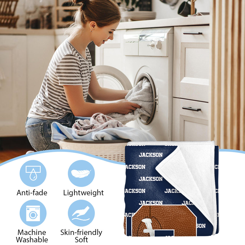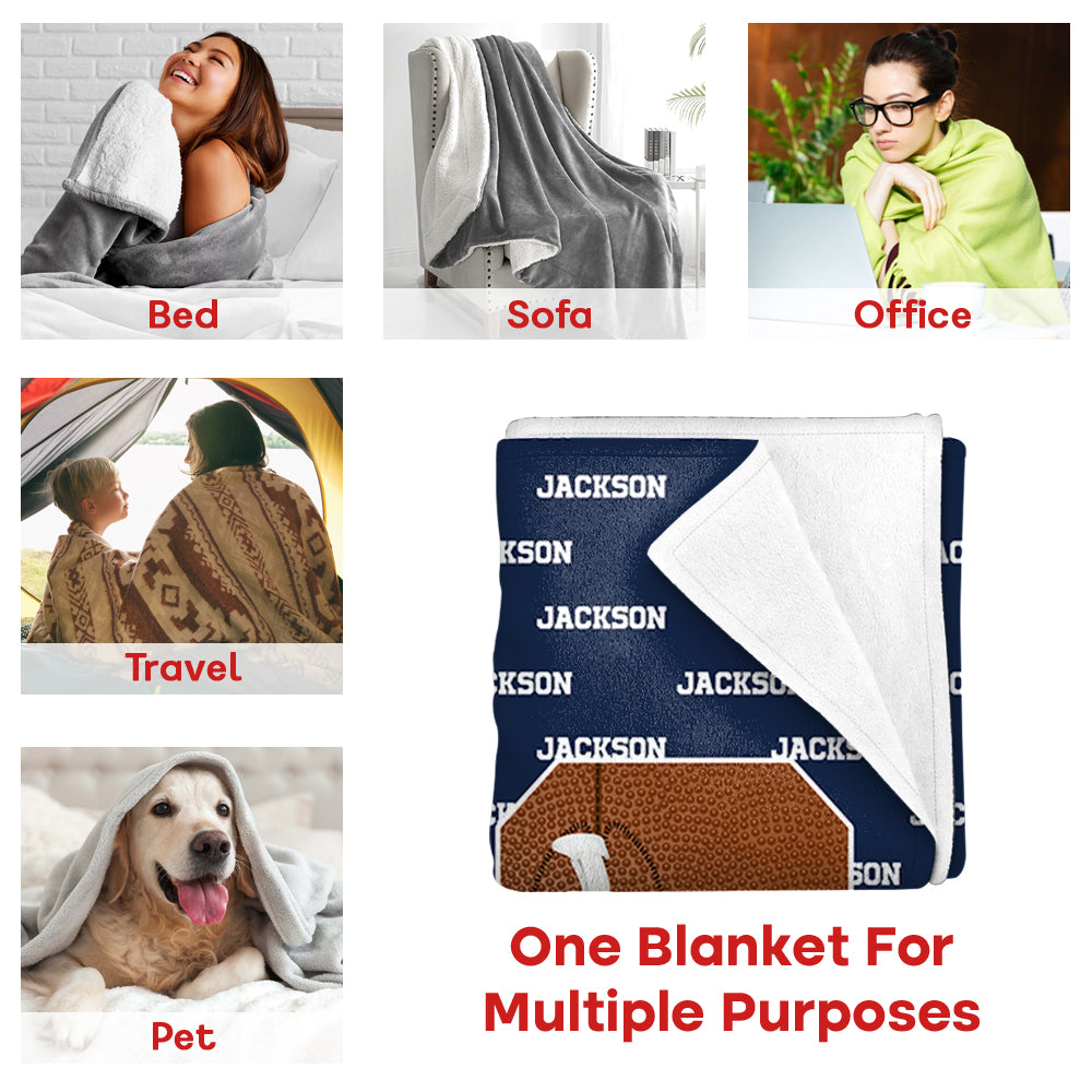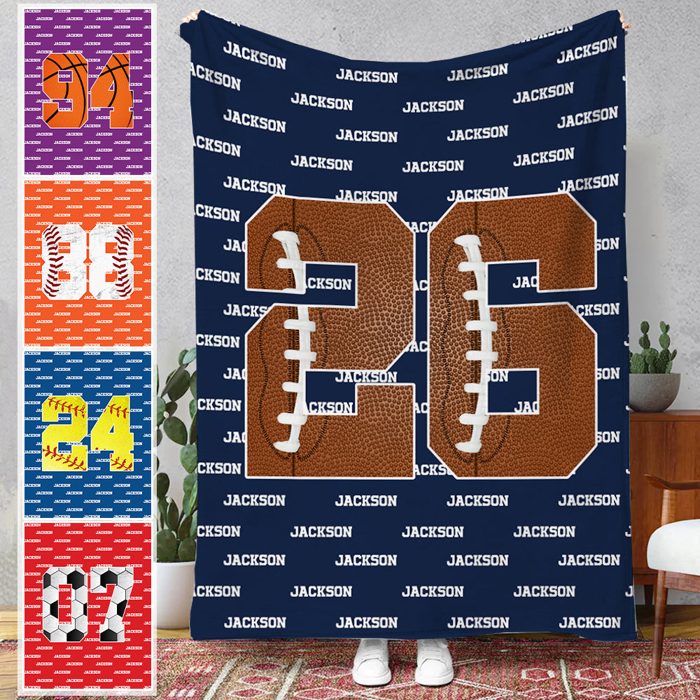 Personalized Cozy Baseball Basketball Number Soft Blanket with Name Birthday Father's Day Gift for Sports Fan