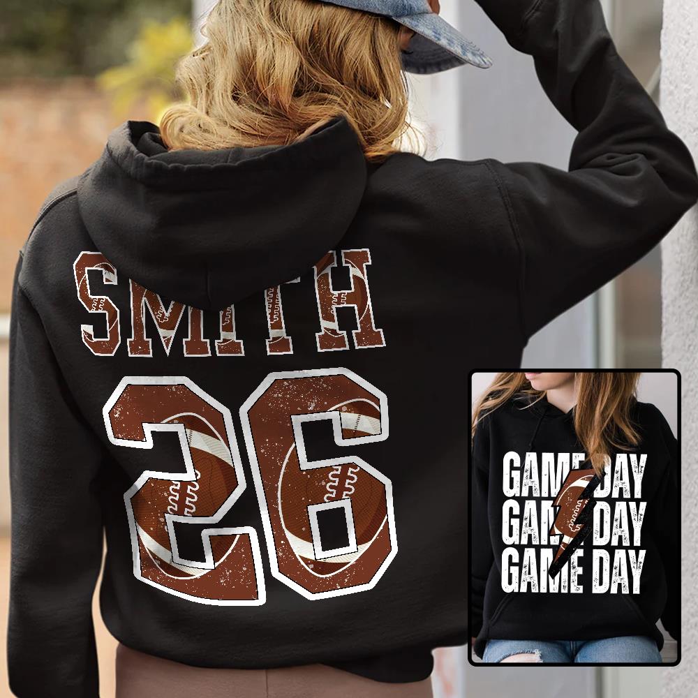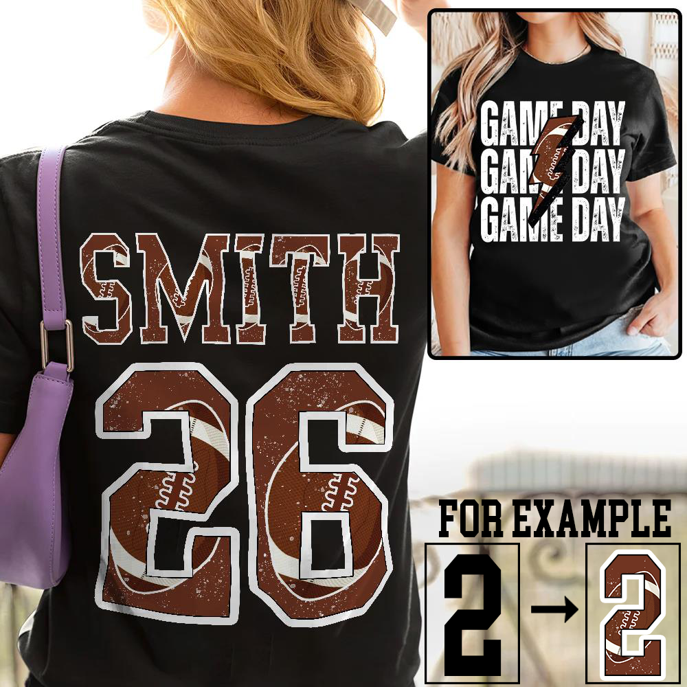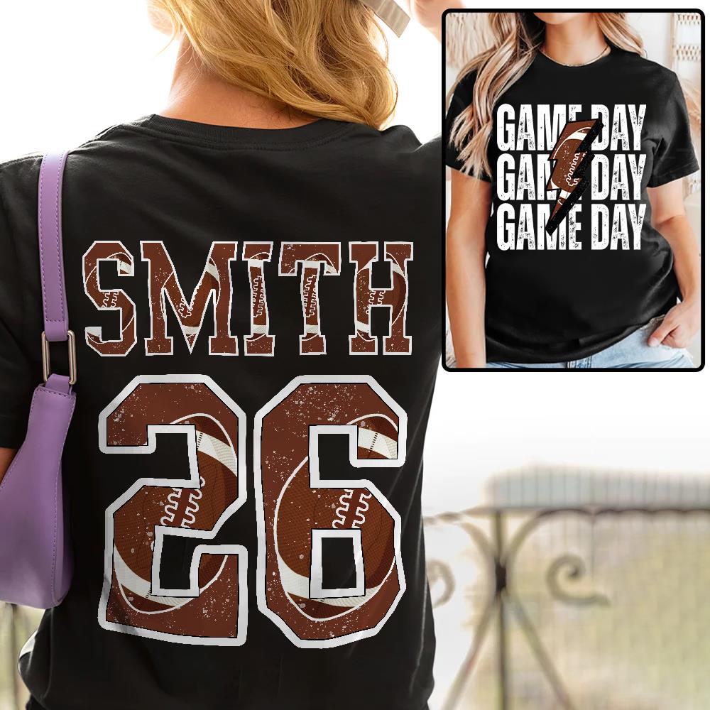 Personalized Football Mom Shirt, Custom Game Day Mom Football Tee, Child Name & Number Football Game Season Shirt, Gameday Sports Mama Tee