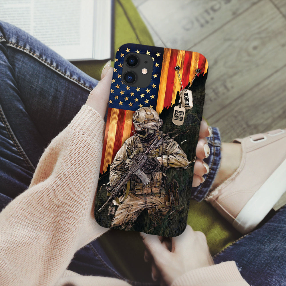 Personalized Gift For Military Veteran Custom Phone Case Gift For Military Veteran Soldier American Rustic Flag Phone Case K1702