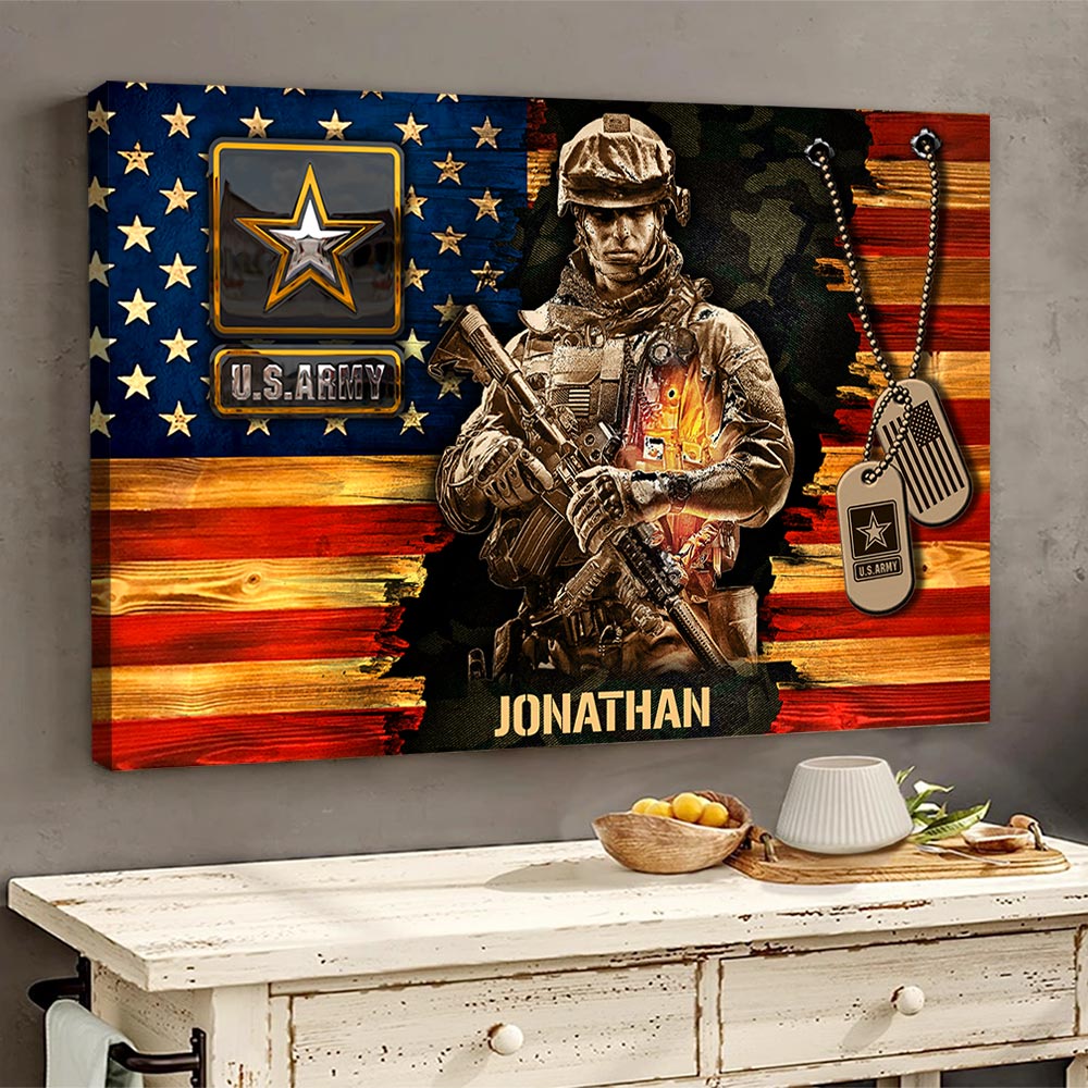Personalized Gift For Military Veteran Dad Grandpa Veteran Custom Gift For Military Veteran Soldier American Rustic Flag Poster Canvas H2511