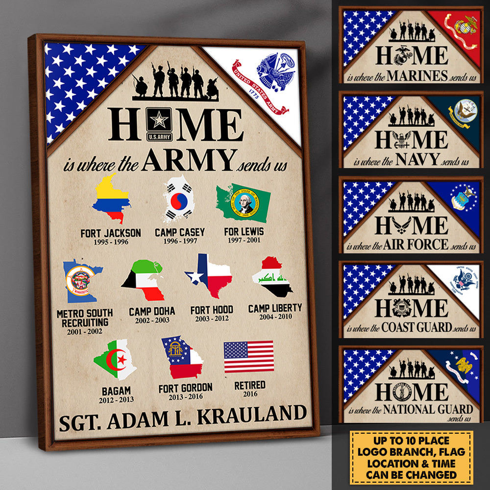 Personalized Gift For Veteran Dad Grandpa Custom Gift For Veteran Home Is Where The Military Branch Sends Us Poster Canvas For Veteran Home H2511