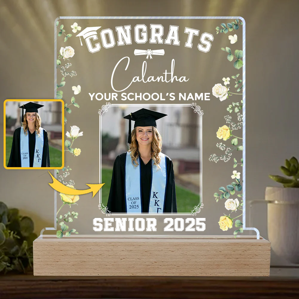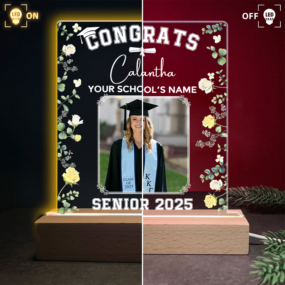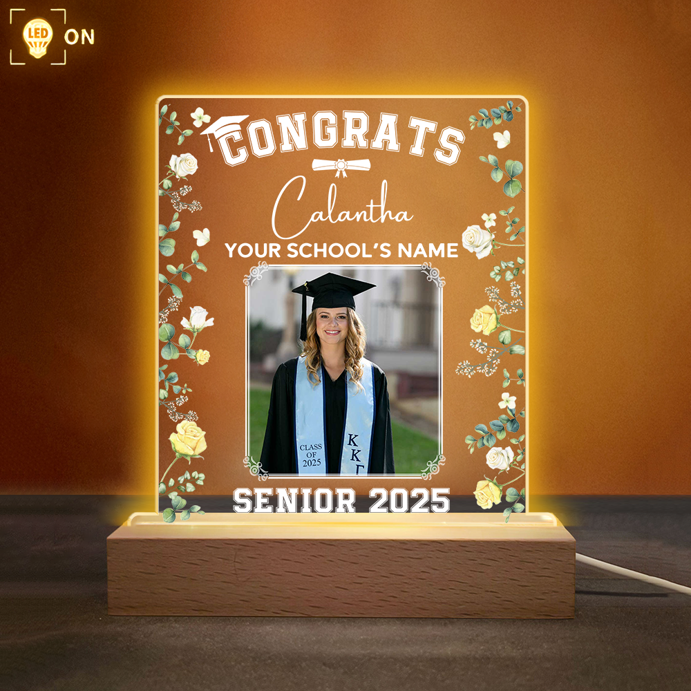 Personalized Graduation 3D Led Light Wooden Base Class of 2025 Senior Gift K1702