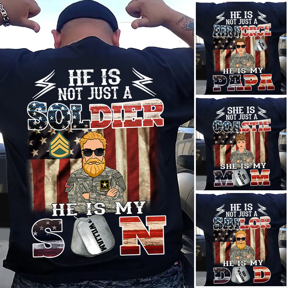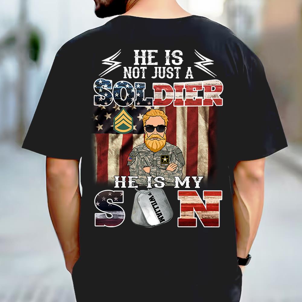 Personalized He Is Not Just A Soldier He Is My Son Shirt Vr2