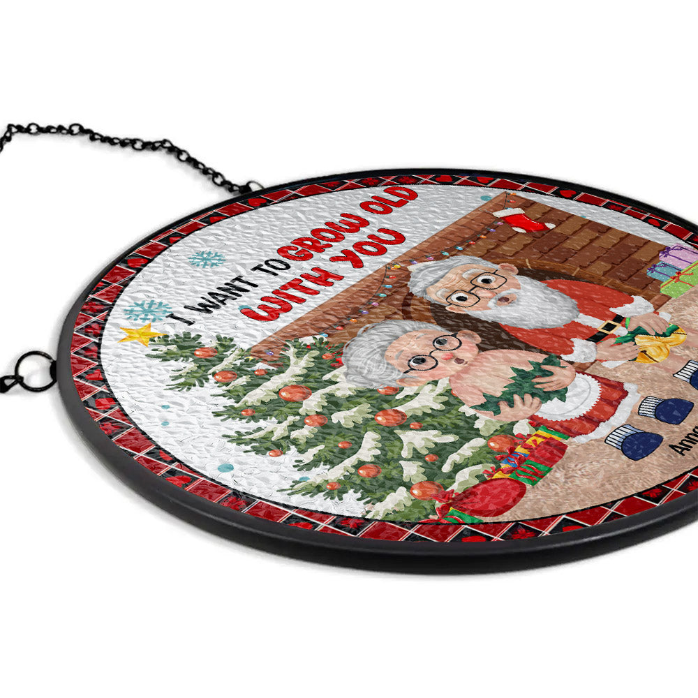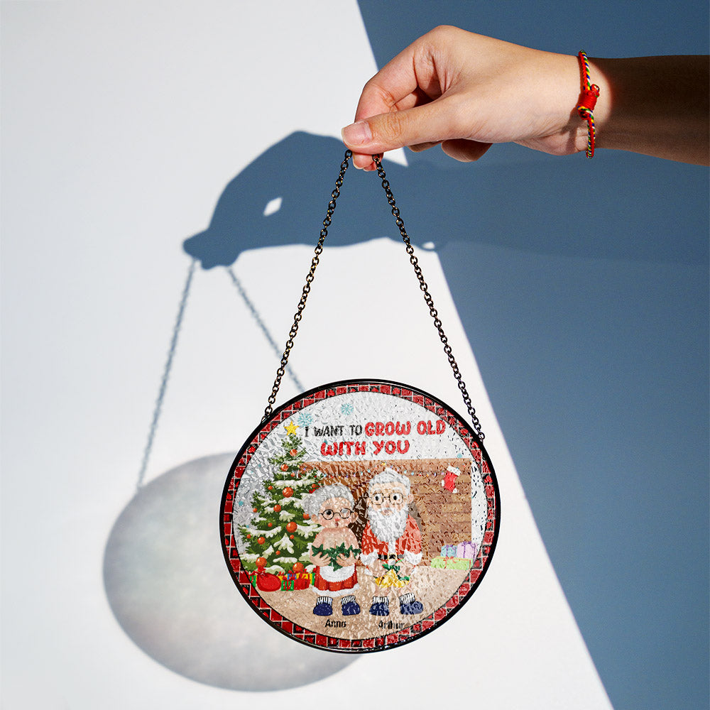 Personalized I Want To Grow Old With You Stained Glass Suncatcher for Window Hanging Christmas Gift For Couple