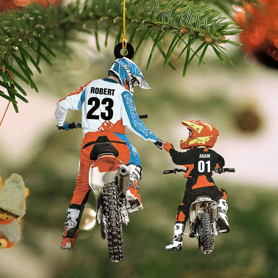 Personalized Motocross Racer Ornament Dad And Kid Motocross Lovers Christmas Ornament H2511
