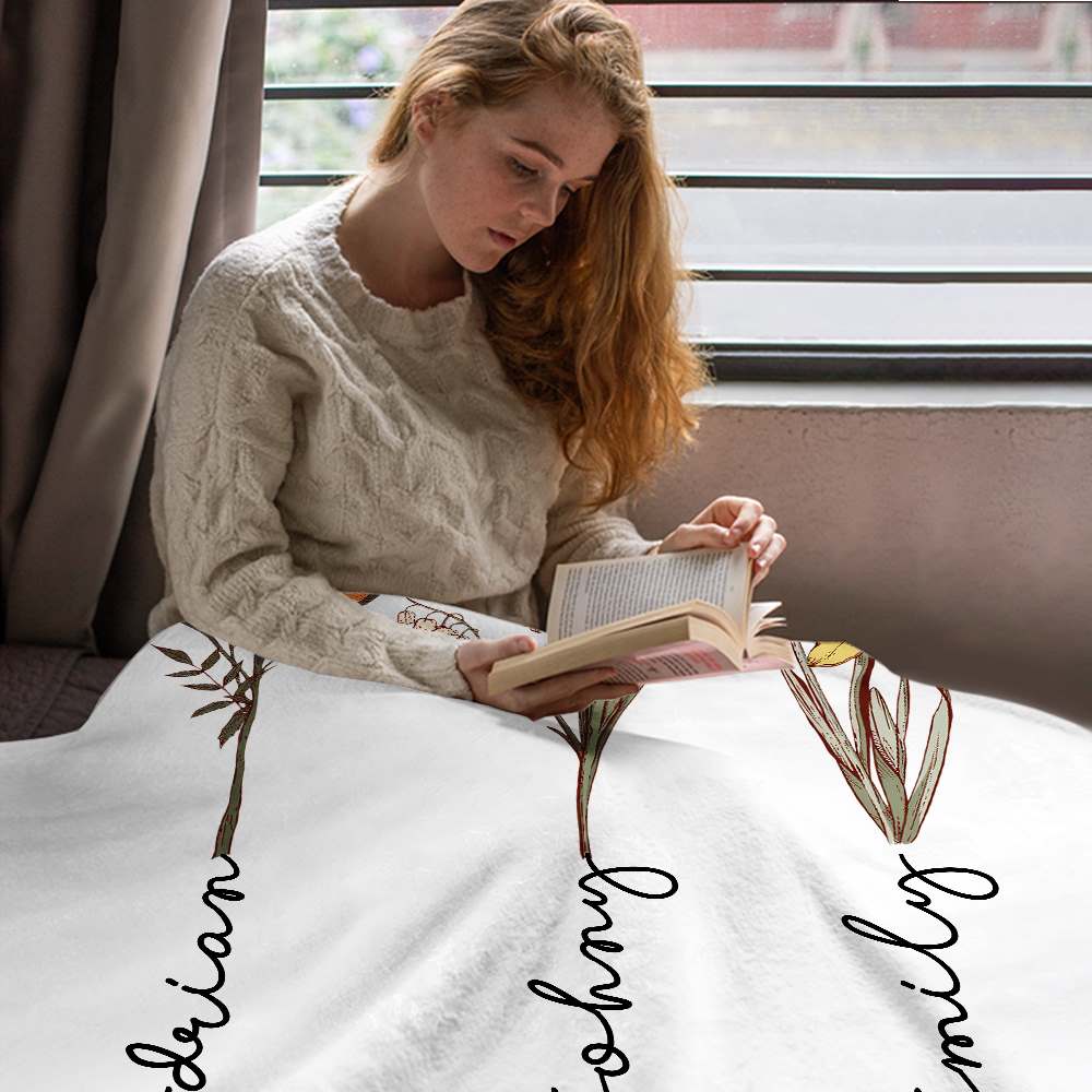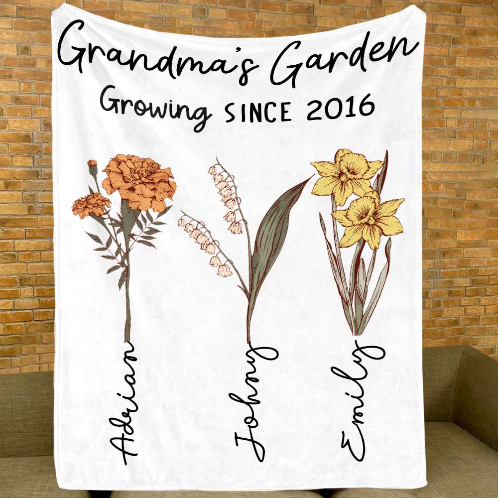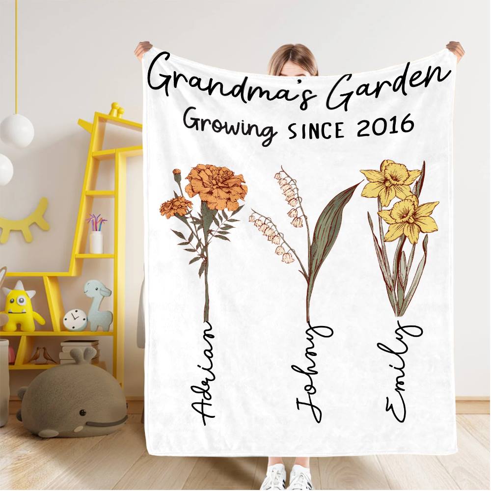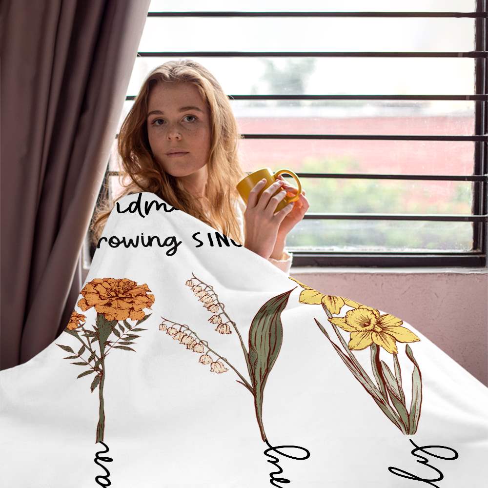 Personalized Name Birth Flower Blanket Grandma Gifts
